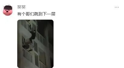 有网友评论:“有一个哥们跳到下一层”。另外网友在微信聊天中透露:“我刚刚还跟这哥们聊了两句,那哥们儿刚刚下来跟我说,他也翻着往下翻了一层,不然得呛死在上面。”