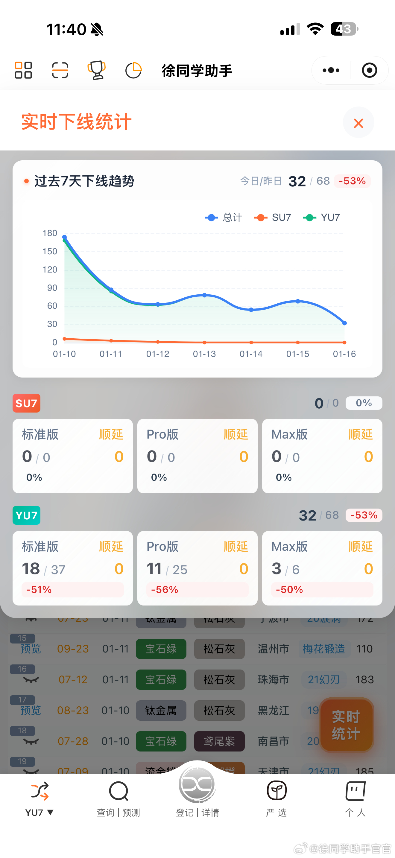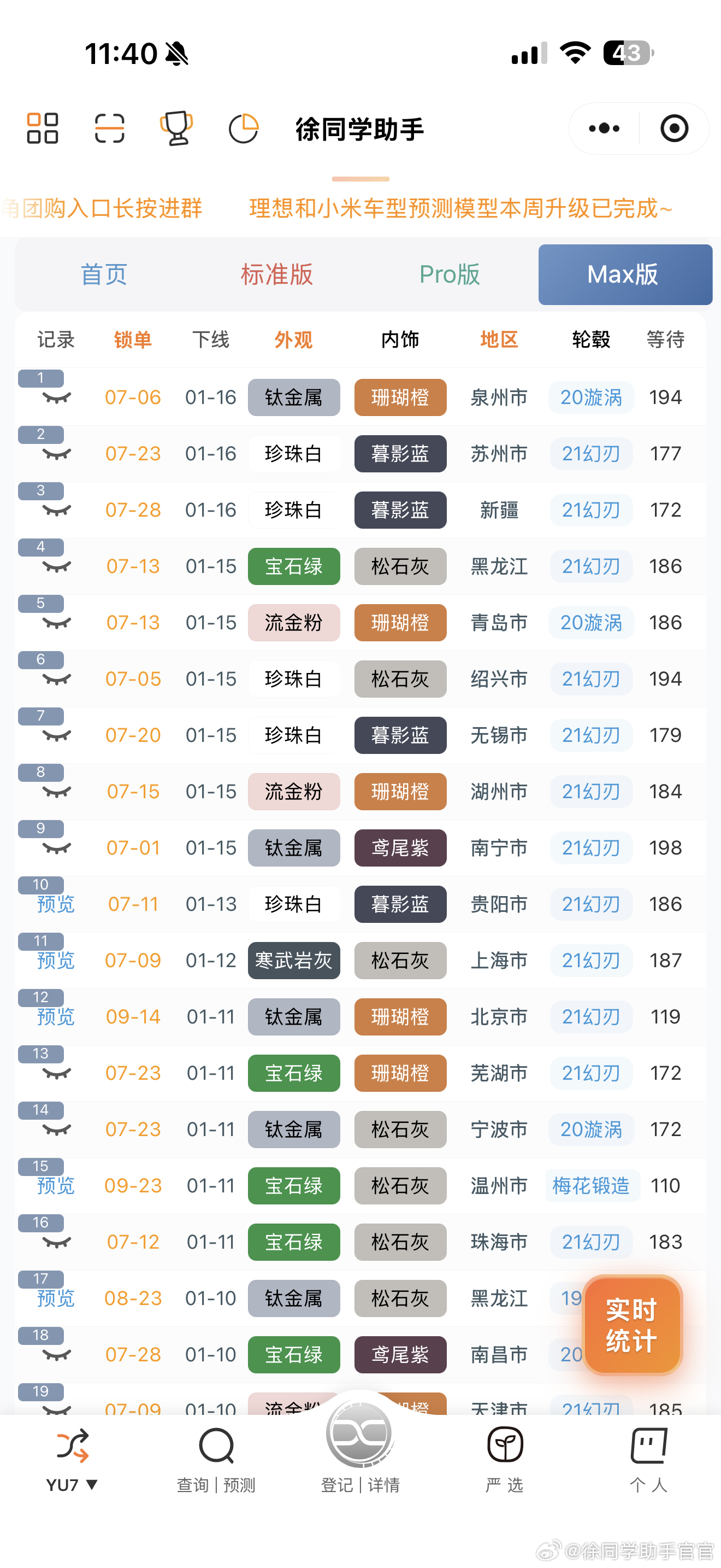 这次直播后出现了一大批伤心的人,在首发权益的基础上还有了低息以及免息,,很多人发问:我半年白等了?虽然这些都属于合理并且正常的经营计划,但还是希望小米可以给出回应吧小米YU7下线进度1️⃣标准版6.29之前的随时下线,7月份的要再稍微等一下2️⃣Pro以7月和8月的订单下线为主3️⃣max版本基本都可以找到现车了(小订前记得找我拿积分政策,全返!)徐同学助手汽场全开