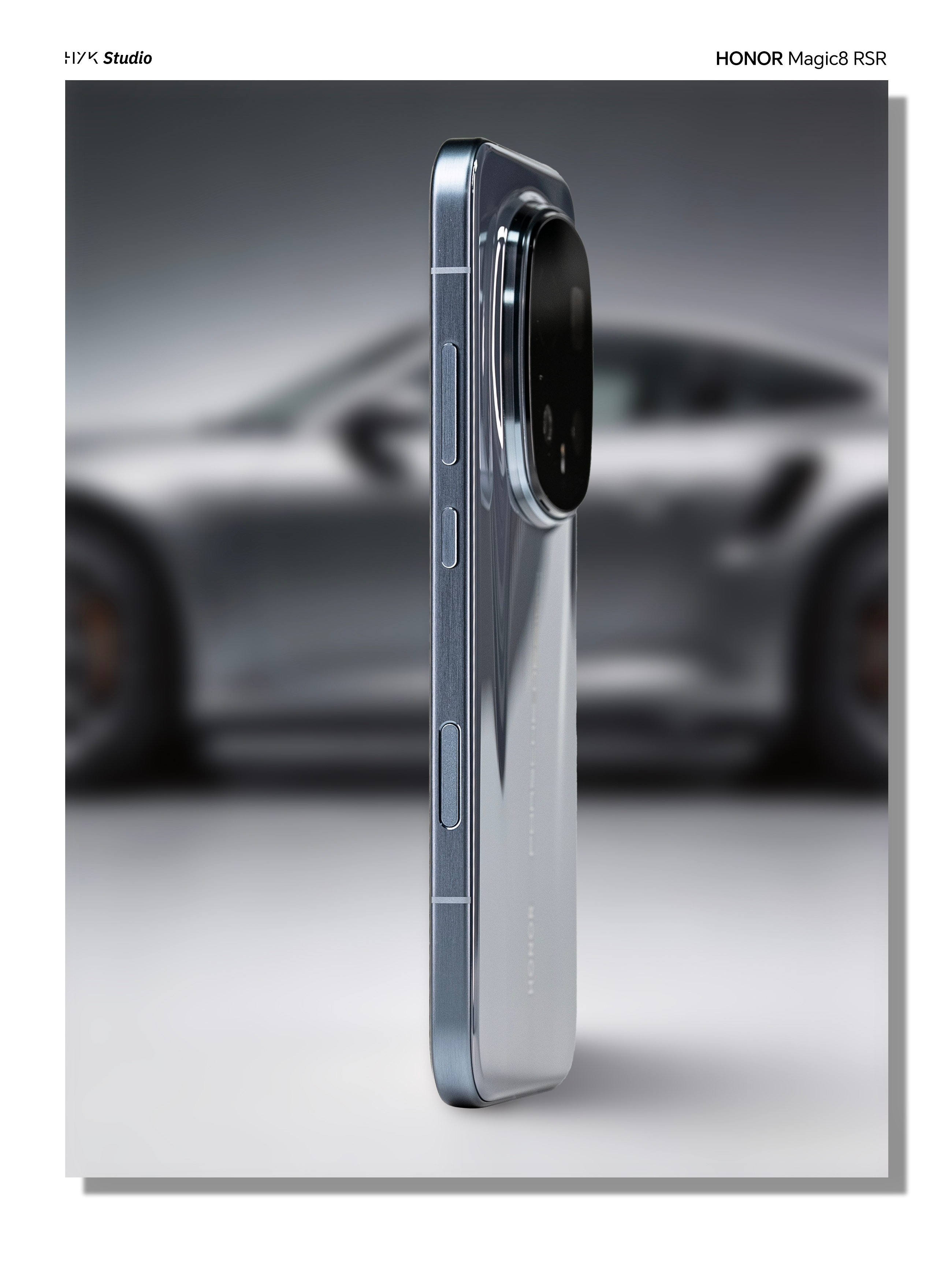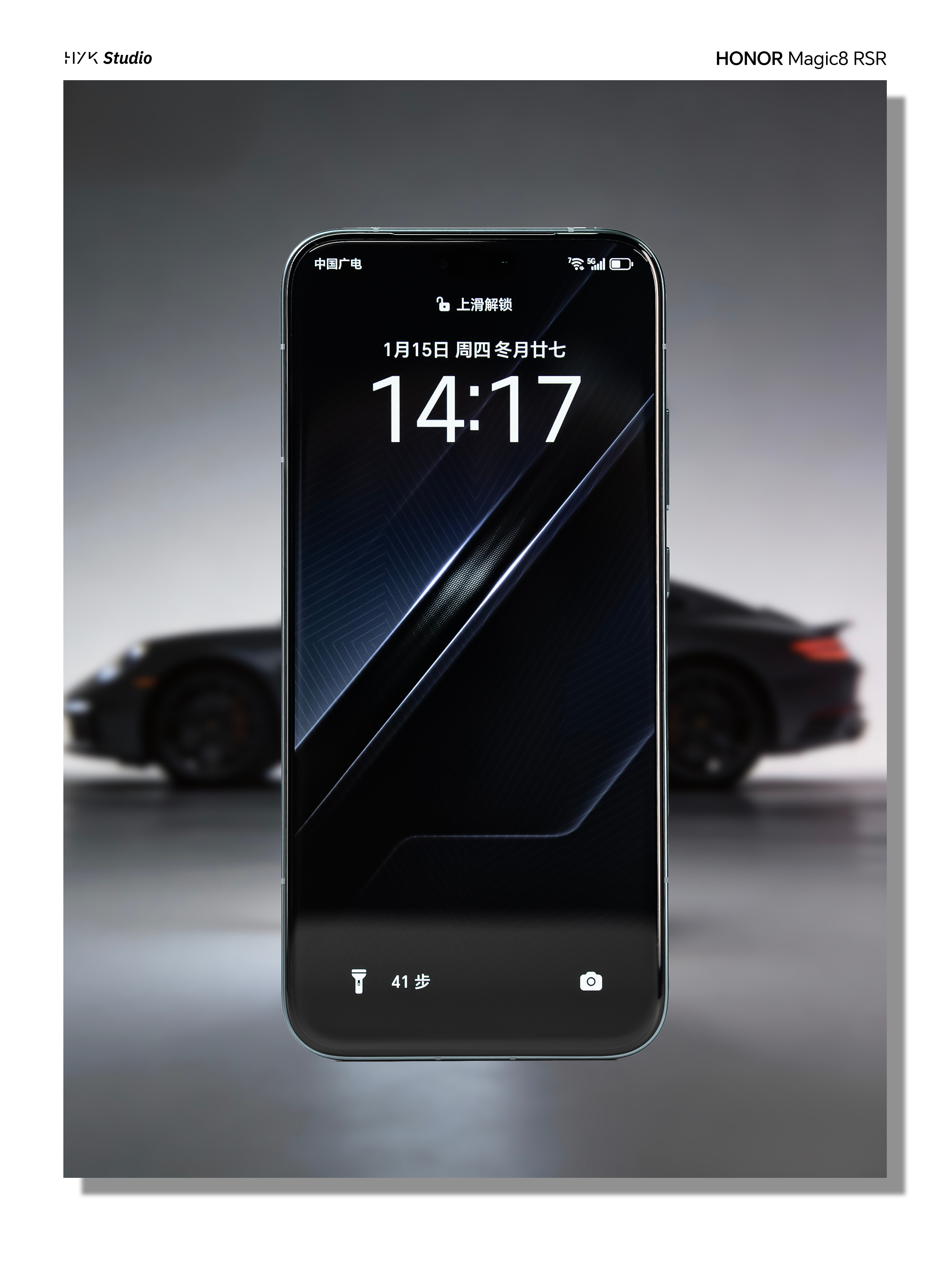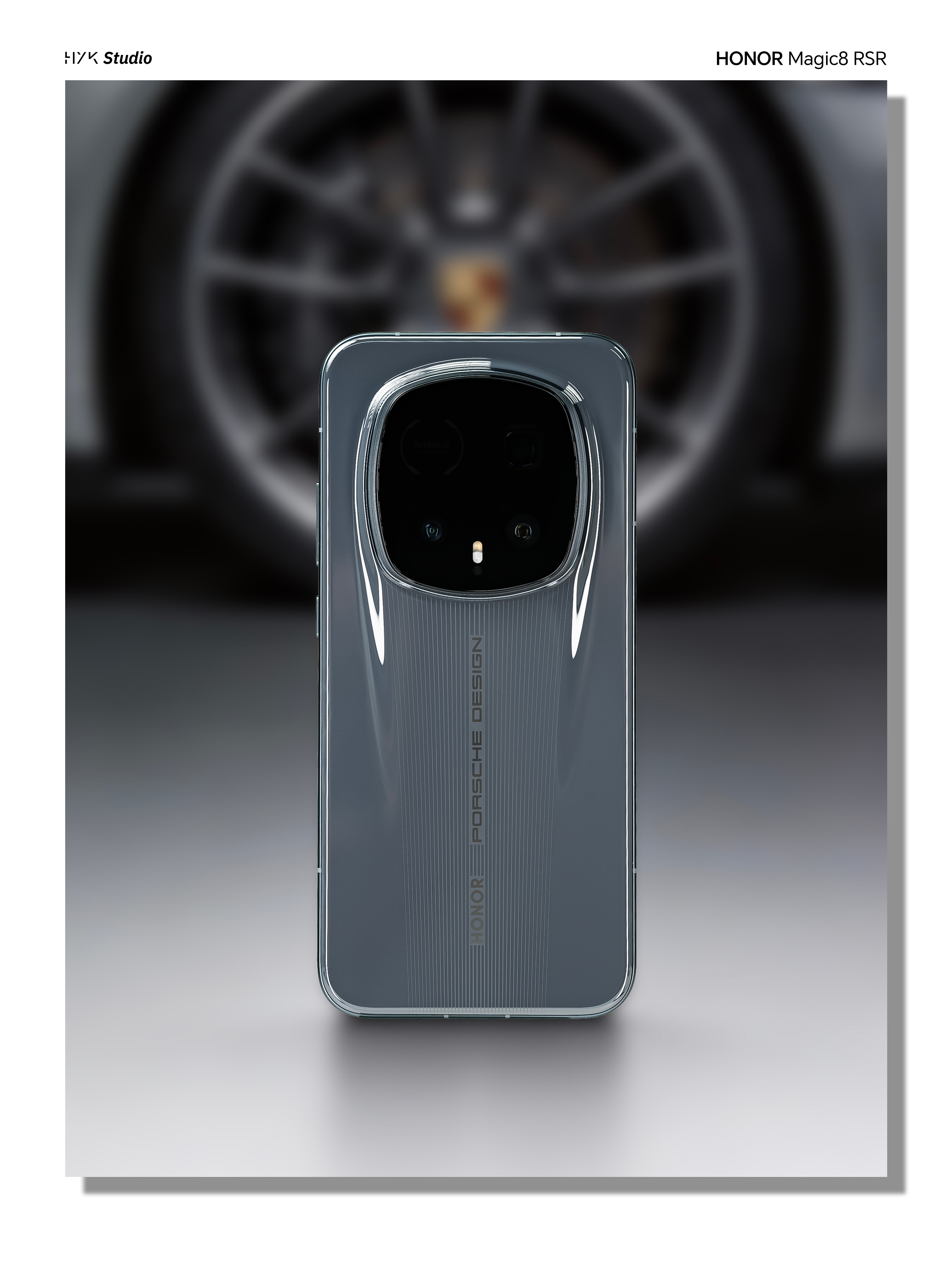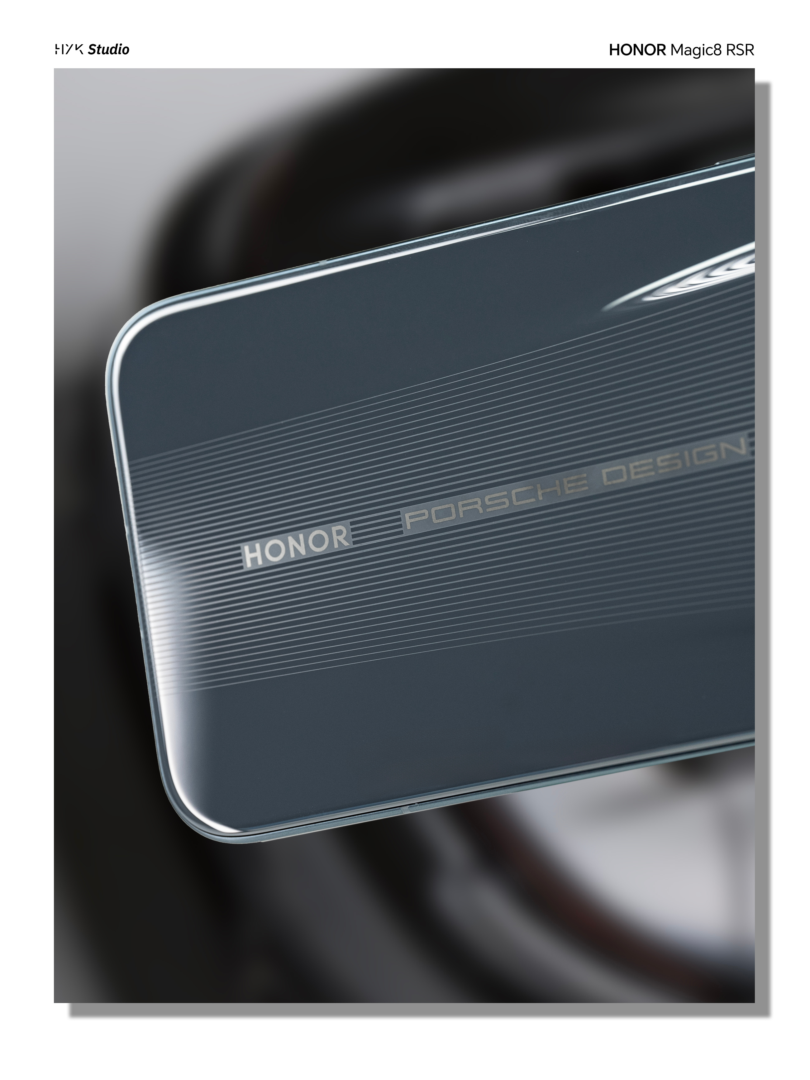 HYK图赏|荣耀Magic8RSR保时捷机身背部依旧贯穿标志的「流光飞线」,在光