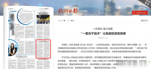 如今,从打破进口垄断到开创冻干检测新路径,赛基生物再次完成从“追赶”到“超越”的跨越。“国产替代是基础,定义下一代技术标准才是目标。”企业主要负责人表示,公司计划将“一管冻干技术”拓展至更多的流式产品线,通过核心技术创新推动整个流式检测行业的标准化、自动化升级,让国产流式检测技术在全球市场拥有更多话语权。