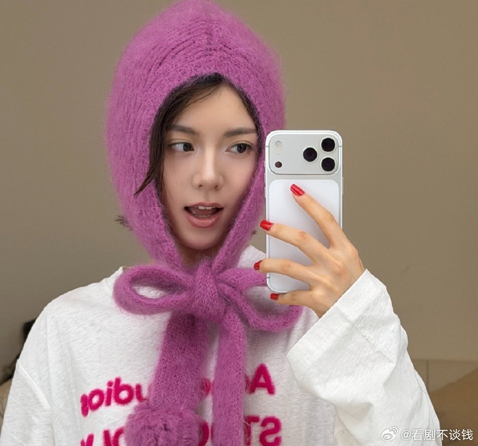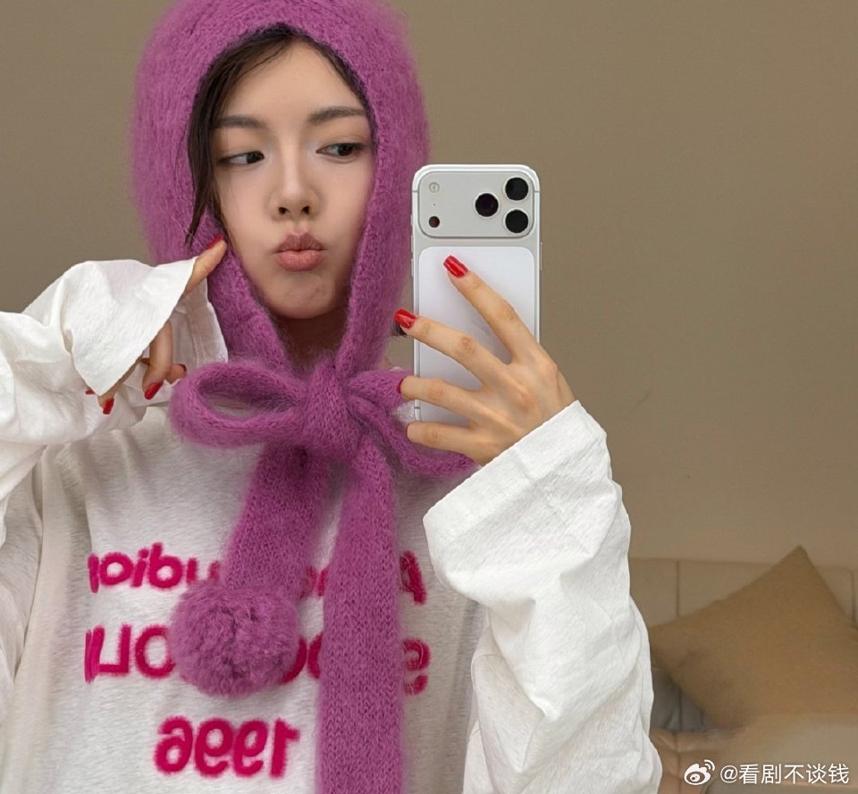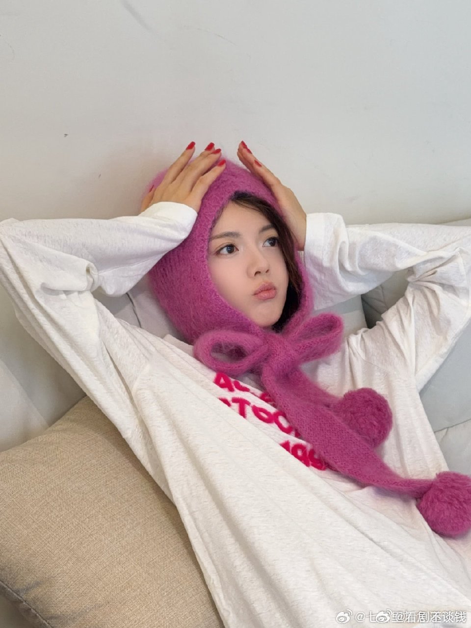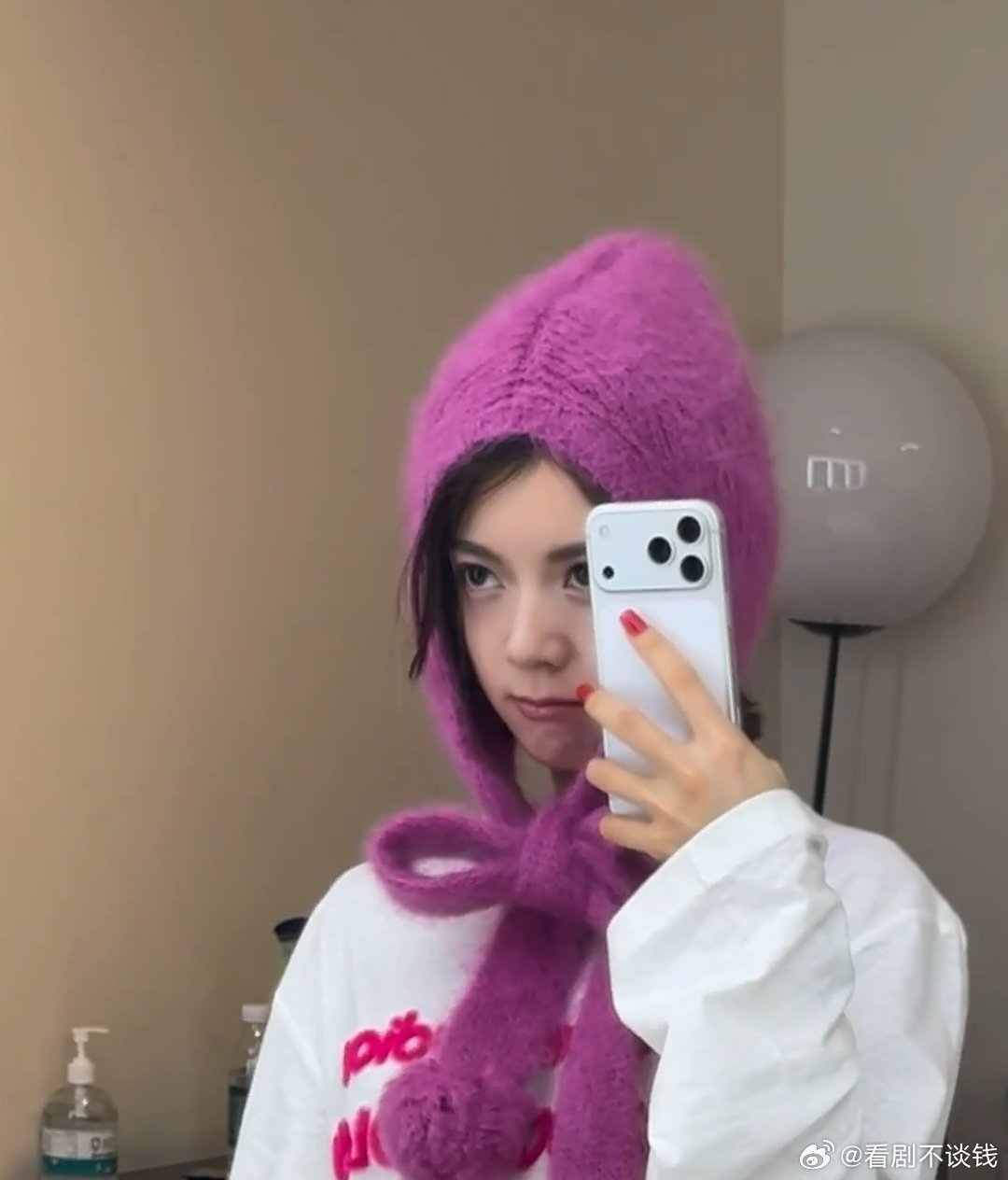 赵今麦自拍营业梅子色的帽子好可爱 古灵精怪小女孩