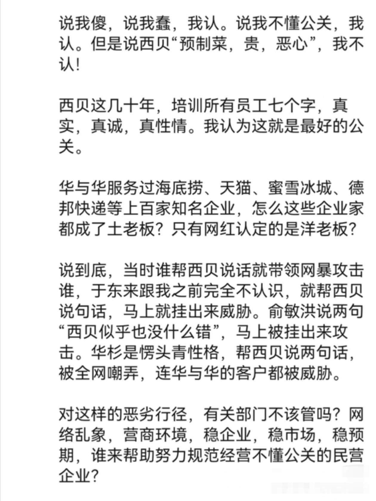 只要西贝在还跟华与华合作所以还是那句话:老贾才是西贝最大的公关危机来源,不仅不
