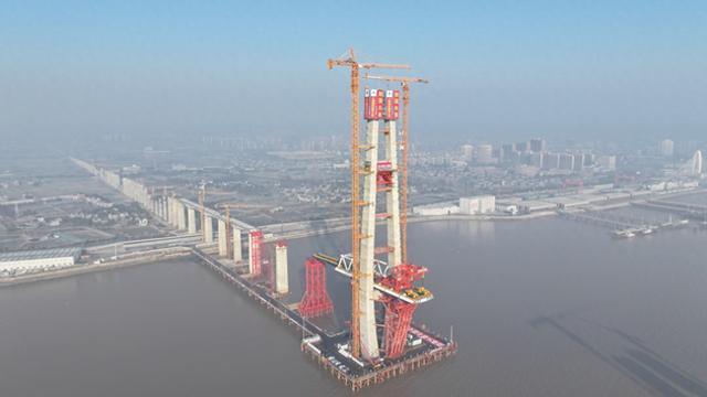 1月16日上午8时58分,杭州湾跨海铁路桥北航道桥8号主塔正式开始封顶浇筑。4小时后,这座高达200米、相当于80层楼的主塔完成浇筑,成为大桥首座封顶的主塔,标志着世界最长跨海铁路桥建设迎来关键节点。