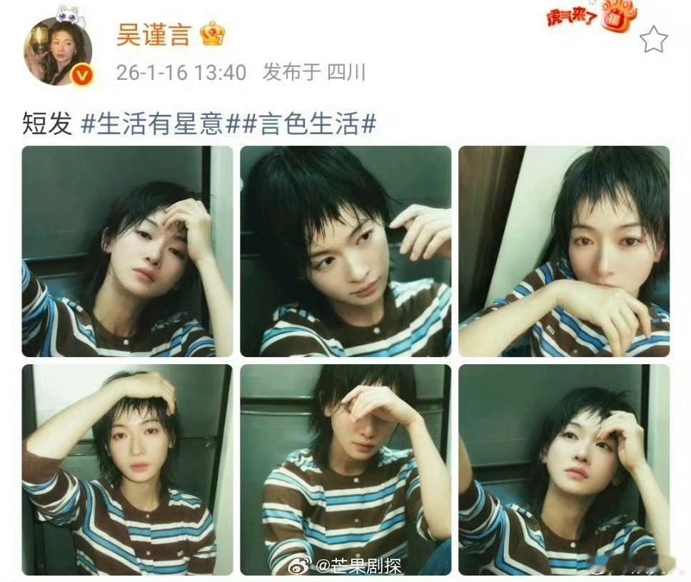 吴谨言超短发吴谨言剪了少年头老公姐,你真帅啊