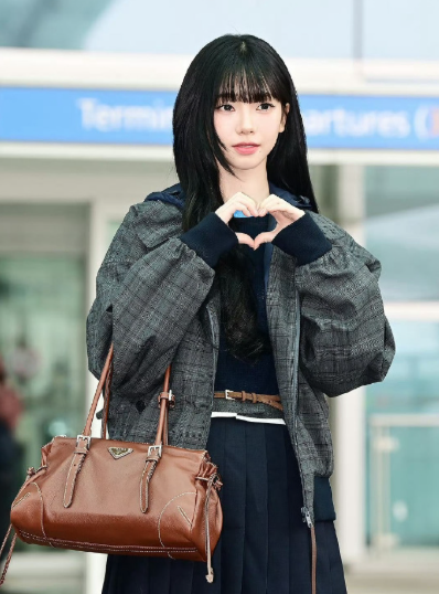 出发米兰时装周的aespa柳智敏机场图,期待我们PRADA小公主