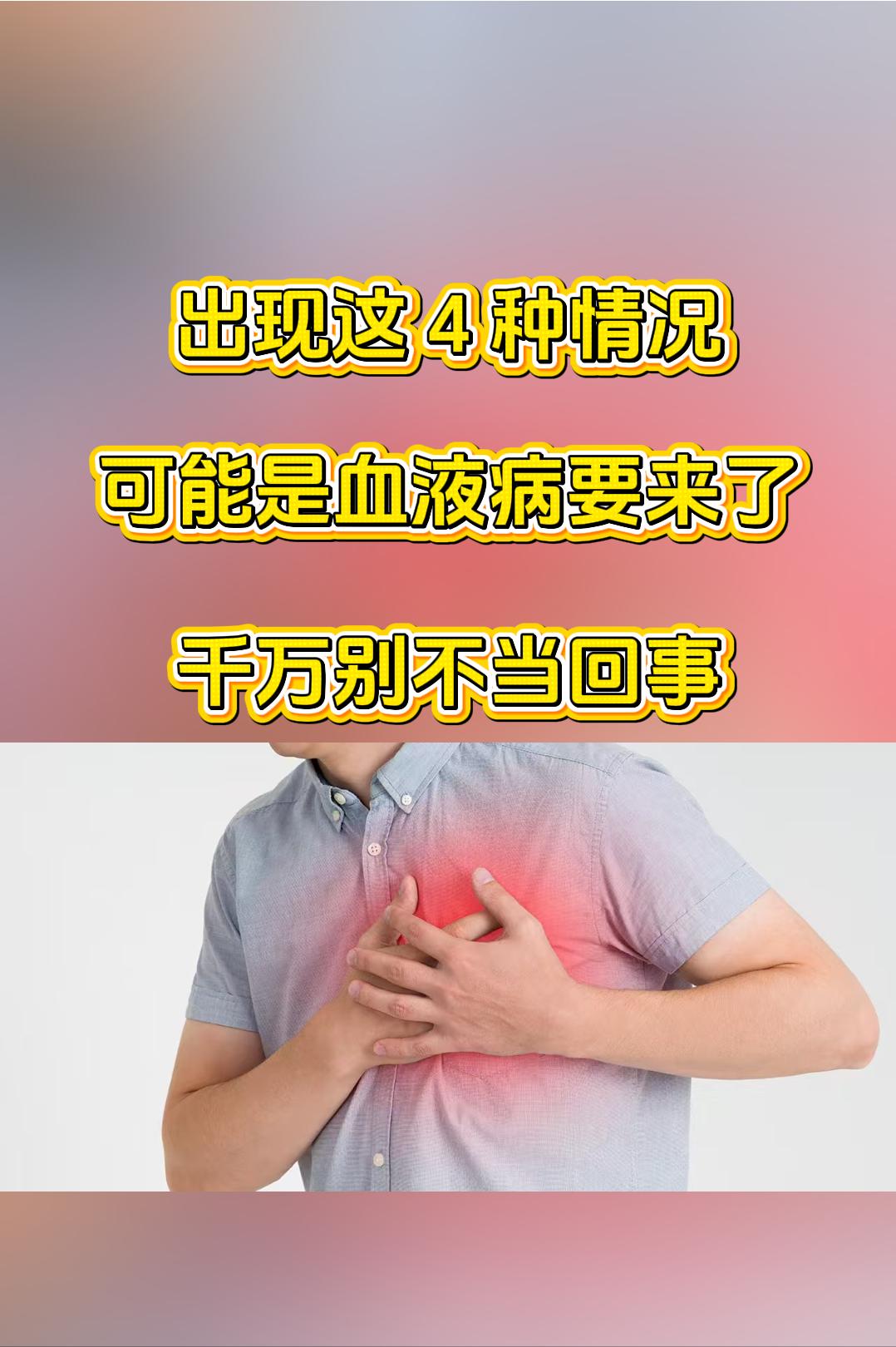 出现这 4 种情况,可能是血液病要来了,千万别不当回事 大家好,我是张广蕊医生。其实,血液病在发病前身体早就给出异常信号了,可很多人根本没意识到,总觉得就是小毛病,扛一扛就过去,想着多休息几天就没事了。 万万没想到,就因为这个疏忽,白白错过了最佳诊断时机。血液病种类繁多,部分类型进展迅速,一旦延误治疗,不仅患者要承受病痛折磨,还可能给家庭带来沉重的经济和精神负担。所以要是生活中出现以下4种情况,一定要警惕,很可能是血液病的预警。 第 1 种是不明原因的疲劳乏力,不是普通的累,是持续几周都缓解不了的困倦,稍微活动就气喘吁吁,这大概率是骨髓造血功能异常,红细胞数量不足导致的缺氧表现,得赶紧检查。 第 2 种是频繁出现的牙龈出血、鼻出血,或者皮肤莫名出现瘀斑瘀点,轻轻一碰就青一块紫一块,这说明血小板生成减少或功能异常,凝血机制出了问题,千万别当成 “上火” 或不小心磕碰。 第 3 种是反复发热且抗感染效果差,没有明显的感冒、感染诱因,却频繁发烧,体温时高时低,这可能是白血病等血液系统疾病导致免疫功能下降,或异常细胞本身引发的发热,必须重视。 第 4 种是不明原因的头晕心悸,尤其是本身有贫血家族史、长期接触化学物质或辐射的人,经常感觉头晕眼花、心慌胸闷,蹲着站起来时眼前发黑,这时候别不当回事,很可能是血液病的早期信号,得赶紧排查。你身边人有没有出现过上面这些情况?赶紧转发给身边人提个醒,说不定这一下就能早发现、早干预,守护一份健康。