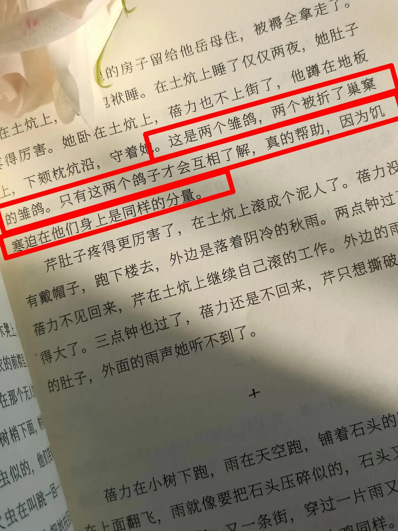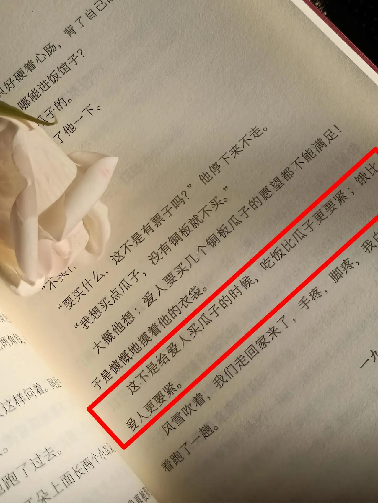 1932年的哈尔滨商市街太冷了,萧红和萧军住在半地下的小屋,房租每月6元,却常常交不起,饿,是刻进骨子里的恐惧。他们的日常食物,是《黑列巴和白盐》里写的:把硬得像石头的黑列巴切成薄片,蘸着白盐分着吃。萧军总把烤得微脆的边缘让给萧红,自己啃中间最干涩的硬块,可就是这样,他们也经常断粮。在《饿》里写,萧红独自在家饿得发昏,看着过道里别人门上挂着的列巴圈,“去拿吧,即使是偷,那就偷吧”!萧军深夜外出跑稿,回来时上唇挂着白霜,带回的一点吃食,两人推来让去,连面包渣都要舔干净。萧红说:“这不是给爱人买瓜子的时候,吃饭比瓜子更要紧;饿比爱人更要紧。” 可就是这样的日子,他们攥着彼此的手,在寒风里走。寒冬的小屋漏风,两人裹着一床薄被取暖,一条棉裤两个人,谁出门谁穿。在《借》里那句“挨着走,昏昏茫茫的走,什么夜,什么市街,全是阴沟,我们滚在沟中,携着手吧”,道尽了他们的处境,像两只折了巢的雏鸽,只能互相依偎着取暖。萧军当家庭教师赚了20元月钱时,两人揣着钞票,“理直气壮地走在街上”。这不是暴富的喜悦,是终于能吃饱一顿饭的踏实。他们典当衣物换玉米面,把仅有的肉炖进粥里,萧军只喝清汤,把肉片全挑给萧红;他们熬夜写稿赚微薄稿费,却舍得花钱买稿纸,因为那是他们对抗苦难的法宝。最让人动容的,是《弃儿》里的那句:“这是两个雏鸽,两个被折了巢窠的雏鸽。只有这两个鸽子才会互相了解,真的帮助,因为饥寒交迫在他们身上是同样的份量。”他们根本就不是什么才子佳人,只是两个没家的人,凑在漏风的阁楼里,把彼此当成了唯一的家。有人说,《商市街》写的是苦,可萧红也写了生的韧性。透过萧红的文字,好像能看见那个半地下的小屋,昏黄的灯光下,两个人分吃一块黑列巴,眼里却闪着光。最动人的暖,从不是锦上添花,是雪中送炭时,递过去的那半块列巴,和攥紧的那双手,然而,即便彼此相互依偎着度过了如此的困境,最终还是败给了时间,各自纷飞了。书摘文案 读书 旧时光里的她 萧红