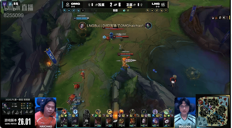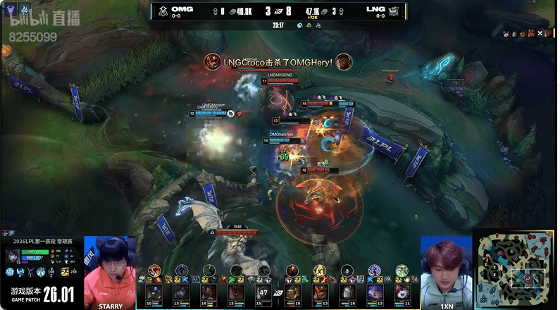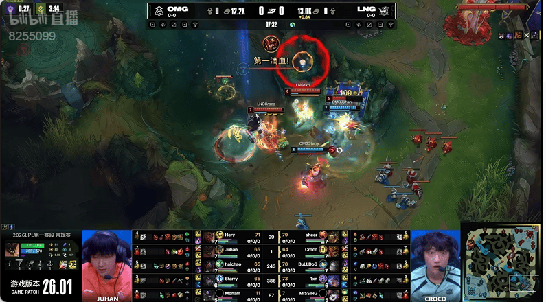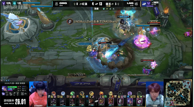 虎扑01月16日讯OMG蓝色方,LNG红色方