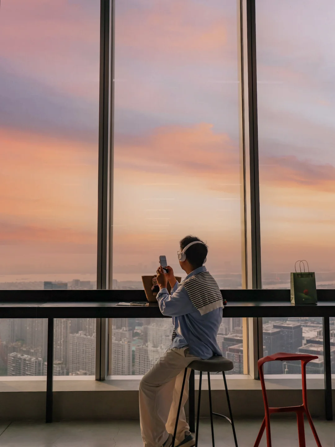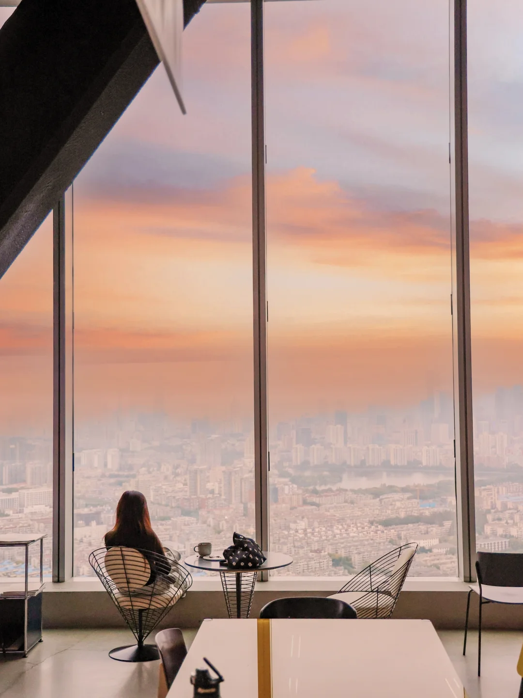 南京是真不缺好看又不花钱的地方呀… 高空日落🌇真的好美啦!!浪漫氛围感直接拉满 不仅能喝咖啡☕还可以看全景夕阳日落🏜️ 360°俯瞰整个金陵城的城市风光!