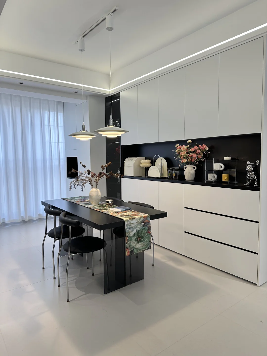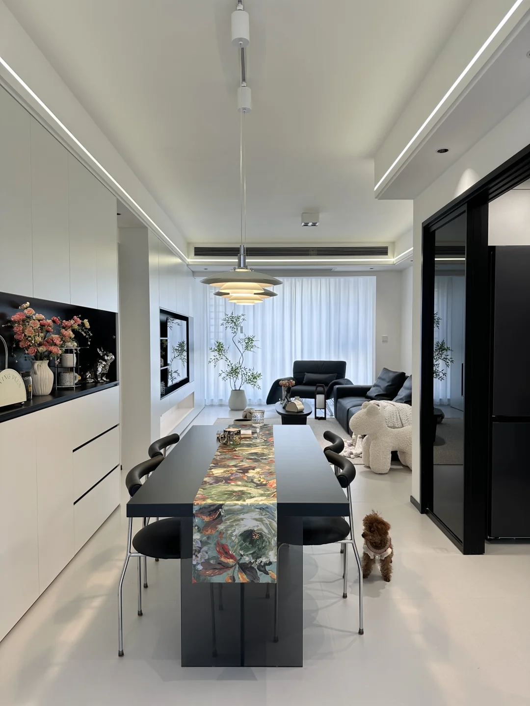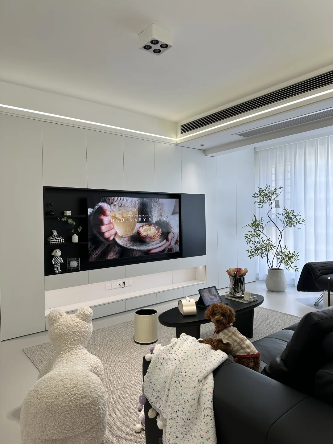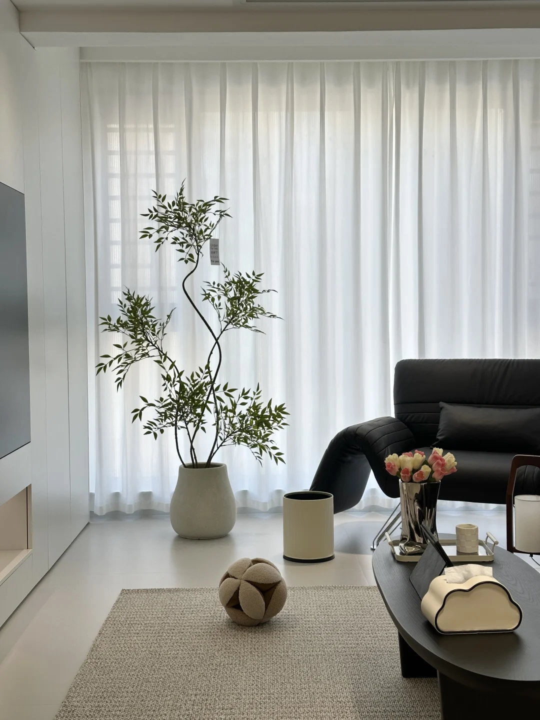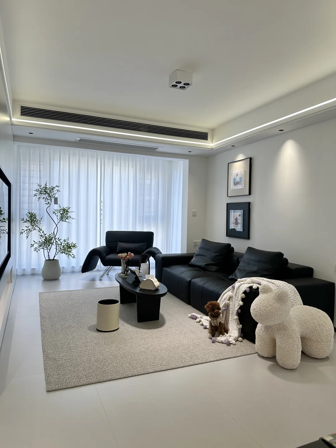120平毛坯房自装,硬装花了16w,落地23w 简约的黑白灰风格,全屋通铺柔光砖 客餐厅一体,满墙的电视柜➕餐边柜 黑白配色真的很酷,看着就干净利落 这大概就是软装的魅力,仿真绿植点缀氛围感拉满 往后每日的三餐四季,既陌生又期待[派对R]