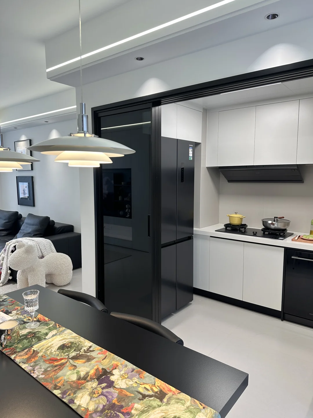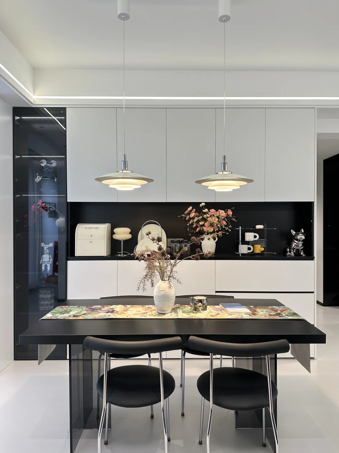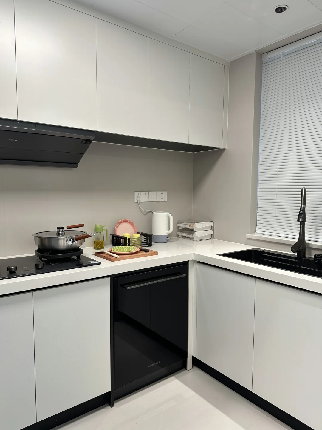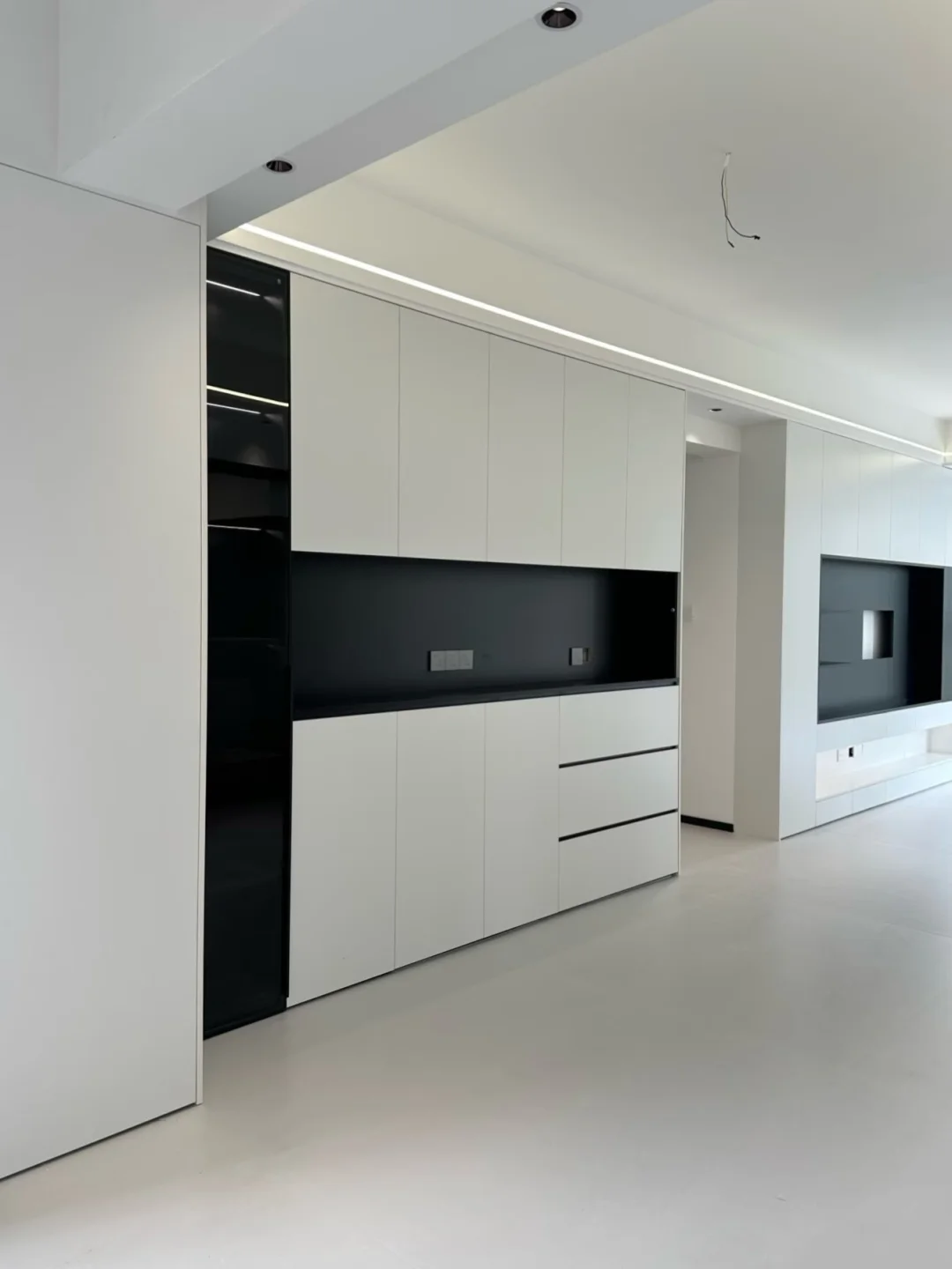 120平毛坯房自装,硬装花了16w,落地23w 简约的黑白灰风格,全屋通铺柔光砖 客餐厅一体,满墙的电视柜➕餐边柜 黑白配色真的很酷,看着就干净利落 这大概就是软装的魅力,仿真绿植点缀氛围感拉满 往后每日的三餐四季,既陌生又期待[派对R]