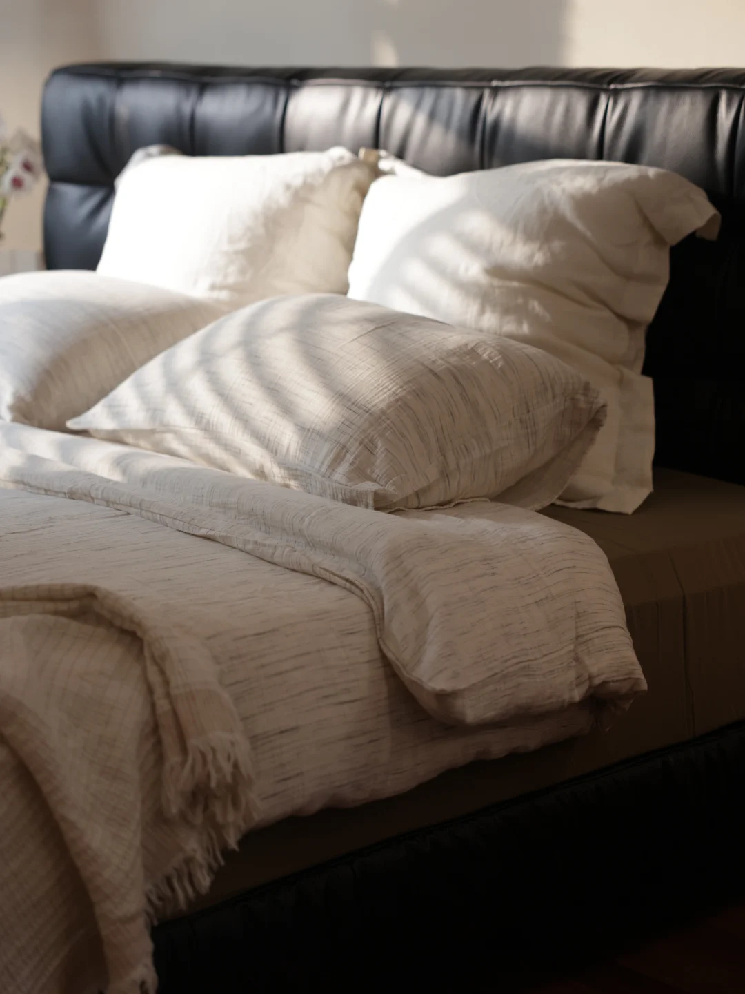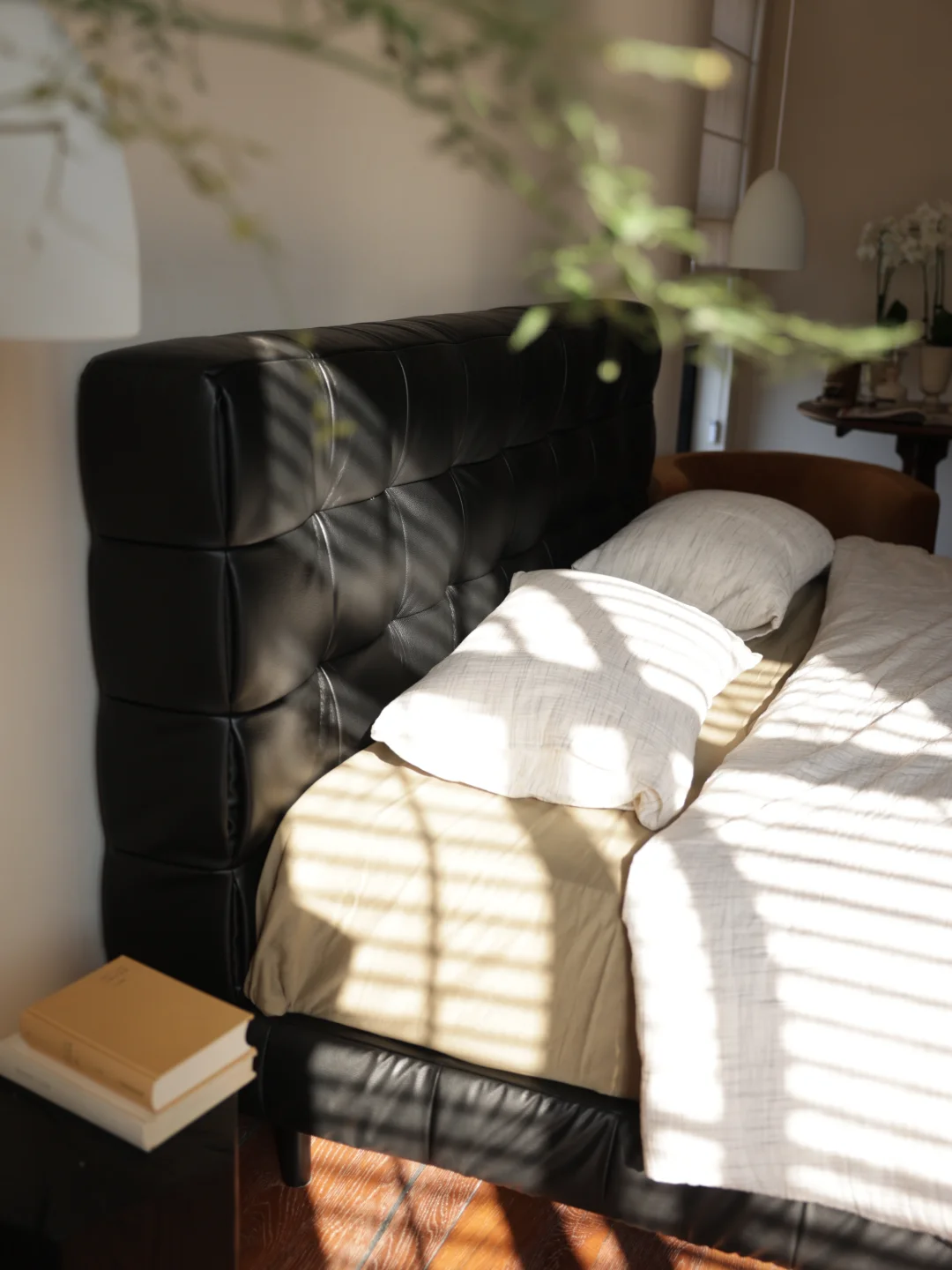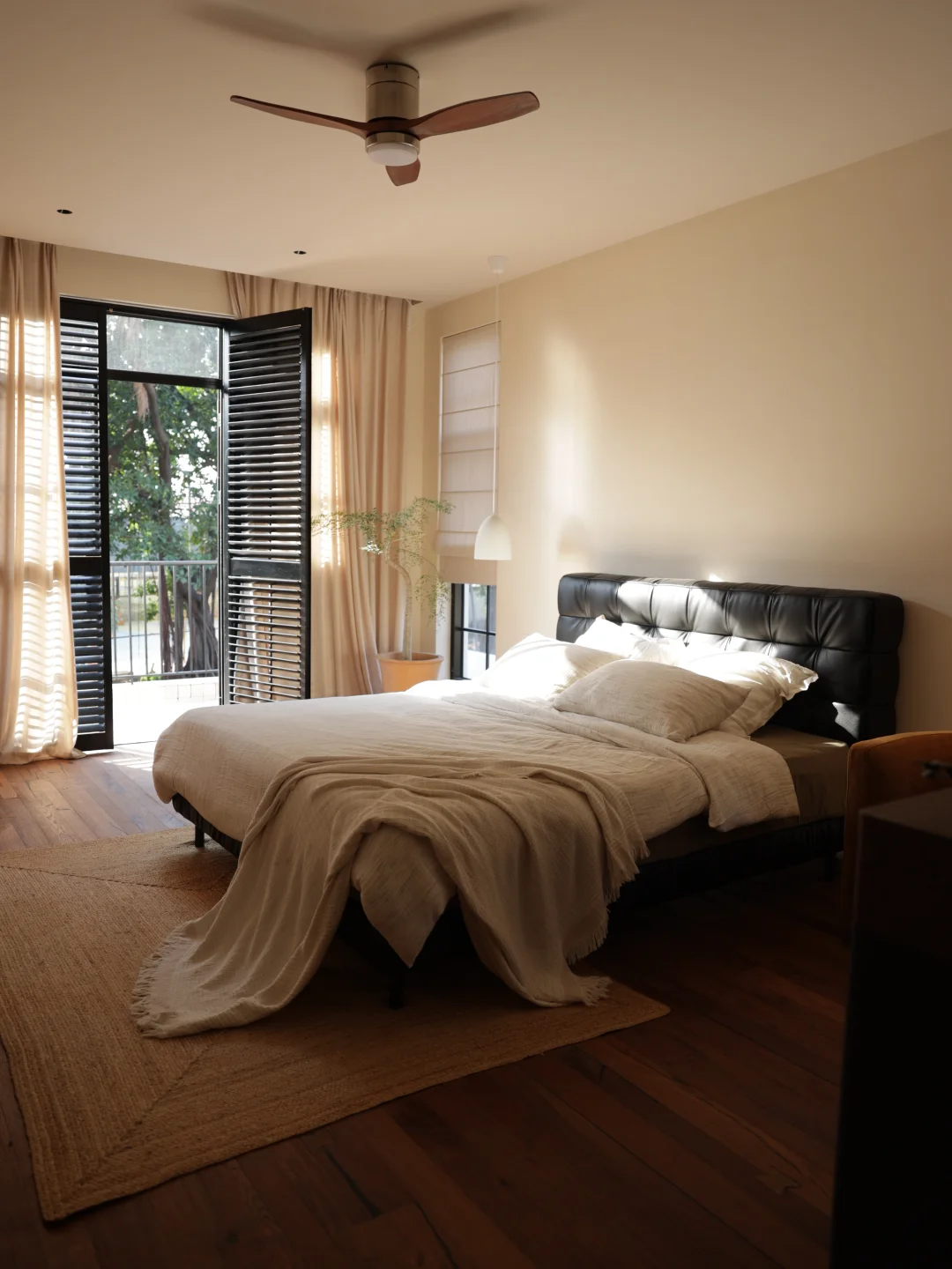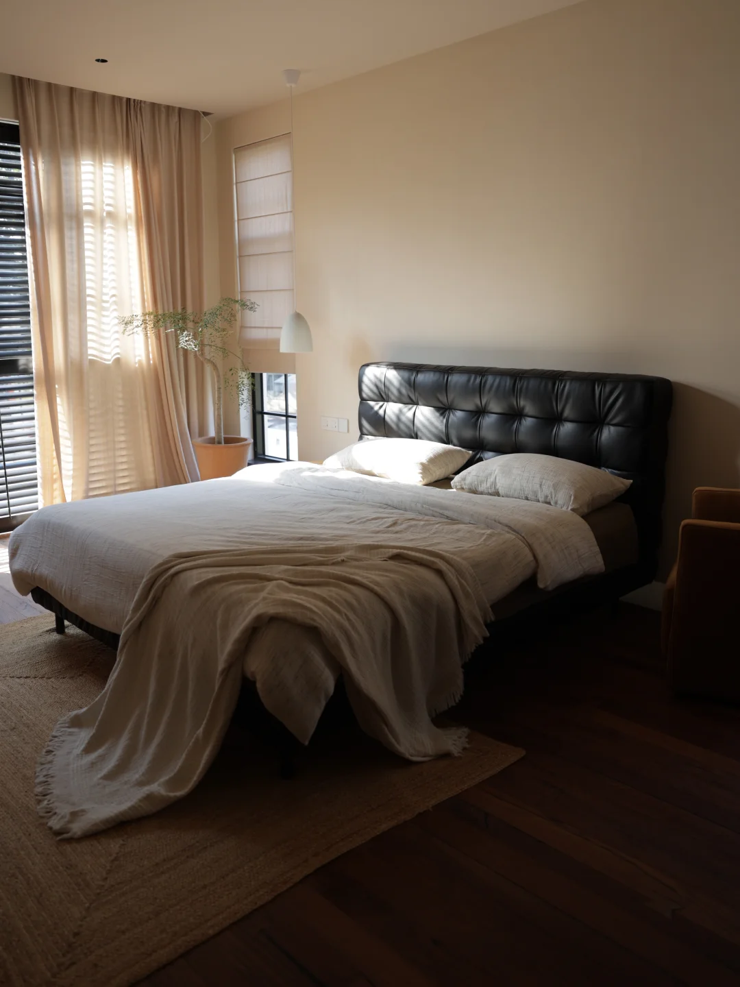 主卧4米宽、5.6米长的空间,被我打造成了专属于自己的治愈小天地。 最亮眼的莫过于那扇老钢窗款式的大推拉门,搭配木百叶门与棉麻窗帘,光影透过缝隙洒进来时,细碎又温柔,抬手调整百叶角度的瞬间,仿佛连时光都慢了下来。床头两侧的窄窗是我的私心,复刻了国外那种小巧精致的窗型,晨起时伴着微光醒来,夜晚枕着月色入眠,满是浪漫的仪式感。 脚下的做旧复古大实木板,踩上去是温润的质感,自带的岁月肌理和整个空间的调性完美契合,光脚踩在上面晃悠,是独属于居家的松弛与自在。奶酪色的艺术漆墙面,摒弃了冰冷的工业感,温柔的色调包裹着整个房间,像被一层软乎乎的云朵拥住,治愈力满分。 卧室的灵魂,必须是这张爱依瑞斯瓦尔德软床。进口头层黄牛皮的触感堪称一爵。 天然肌理细腻亲肤,贴上去的瞬间就能感受到皮革的温润,而且它就像有生命力一般,会随着时光沉淀慢慢呈现出独特光泽,真正做到“越用越珍贵”。最让我心动的是它的「爆浆」叠皮工艺,床头工整紧密的皮革拼接,侧面饱满精致的手工叠压缝制,都是老工匠一针一线细细打磨的成果,独特的立体感让倚靠的触感格外舒适,腰背被温柔承托着,疲惫感瞬间消散。 搭配的她家护脊pro床垫真的锦上添花。这款支撑护脊透气床垫,按照人体曲线以及轮廓合理选材+科学搭配,提供完美承托,使床垫的软硬程度更加适应睡眠要求。躺在这样的床上,被柔软与奢享包裹,才懂什么叫“人间值得”。 这个装满了我喜好的主卧,不只是休憩的地方,更是能卸下所有疲惫的温柔港湾。 爱依瑞斯爱依瑞斯家居爱依瑞斯瓦尔德床爱依瑞斯护脊pro床垫卧室别墅别墅主卧木地板,