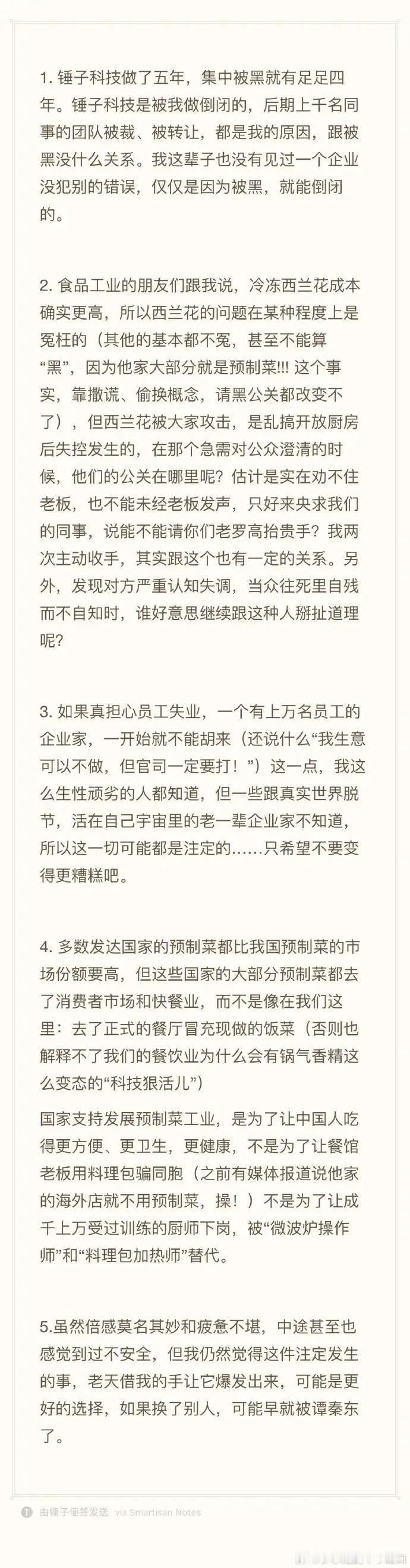 说实话,我真的没见过这么轴的人,都已经到这种程度了,全国300多家店,已经关掉了100多家,结果这个老板还在嘴硬,还没意识到问题的所在,还想把锅甩给老罗。 我刚开始还在想,老罗要是看了贾老板的朋友圈会说些什么呢? 结果没过多久,老罗就发文回应贾老板。 老罗为了让贾老板能看清楚自己发的是什么,还专门举了一个例子来说明,他这是在告诉贾老板,自己的店铺关闭了这么多家,真的问题不在于老罗,而是在于他自己。 作为一个普通人,想对贾老板说,贾老板你不要老是拿员工说事,如果你真的心疼你的员工,那么请你不要作了,好好做餐饮就行了。 第一,贾老板,你开饭店的初衷是为了挣钱,不是为了养员工。这一点无可厚非,因为当老板的哪个不想挣钱,员工说白了也只是在替老板干活,只能说老板好,员工好,员工好,老板好。 第二,你如果为了员工好,为什么不给买社保?这是一句大实话,全国这么多家餐馆,有几个员工买社保呢?大多都是领着最低的工资,干着最苦的活,还口口声声的说着为员工好,如果真的为员工好的话,那就拿点实际效益出来,而不是靠口上说。 第三,造成今天这个局面你有不可推卸的责任,不要埋怨人家罗永浩!每每大家要淡忘你的时候,你就跳出来耍存在感,捅自己一刀,这怨谁?自己狂妄自大,固执傲慢,这毛病不改。所以到现在为止,你还是认为自己没有错,还自认为自己很了不起,把所有的问题都揽在自己身上,认为自己一个人可以应对。 最后老罗回应了你的话,实际上是好心劝你,让你好好做餐饮,结果贾老板直接喊话了,还表示今晚要好好和老罗掰扯掰扯。 就目前的情况来看,你们两者之间不用掰扯,网友们已经有了答案。 贾老板,只想送你最后一句话:多看看评论区,希望你当一个听劝的人,而不是盲目自信、狂妄自大的人。