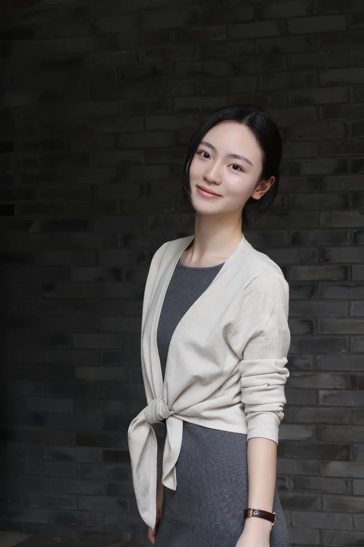 一位气质温柔的长发美女。身穿白色衬衣,黑色职业西装套装,她身姿婀娜,肌肤似雪般莹