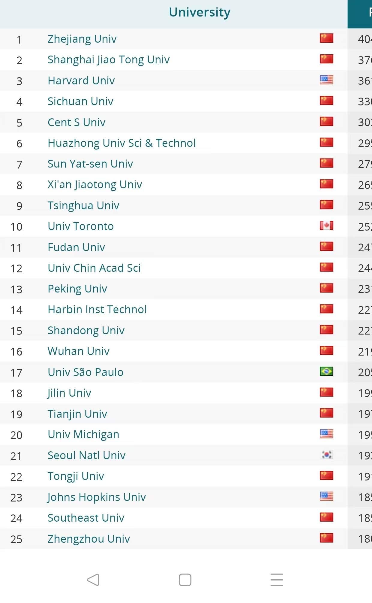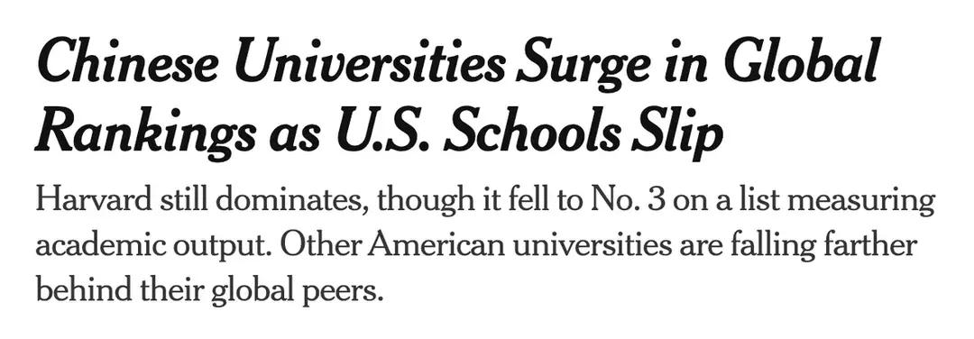 世界大学排名大洗牌浙大力压哈弗清华登顶全球前25所知名大学中国占19所 据《纽约时报》1月15日消息,世界“莱顿大学排名”按学术出版量划分,浙江大学力压世界名校哈弗大学排名世界第一,上海交通大学排名第二,四川大学,中南大学位列4~5名,清华排名第9,北大排名第13。 世界排名前25的大学中国占了19所,这可是按照美国的标准来排的名次。无怪忽硅谷一众科技大佬都纷纷看好中国科技的发展。人才是科技创新最为重要的力量,而高校又是培养人才的地方,不用多久中国就能在科技领域超越美国成为世界上最为重要的一极。