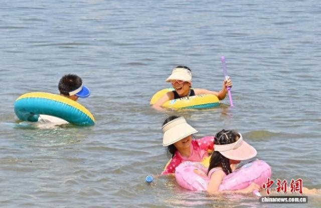 2025年7月8日,小朋友来到吉林长春南湖公园戏水避暑。长春的高温“桑拿天”已持续多日,大批市民来到公园亲水纳凉。(资料图)张瑶摄