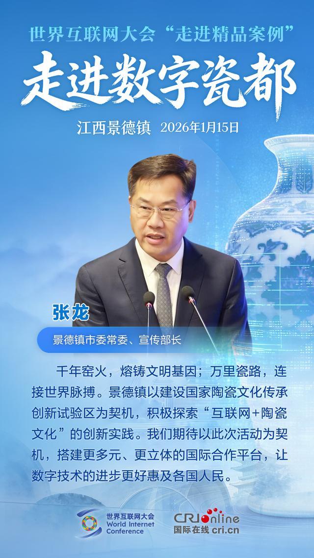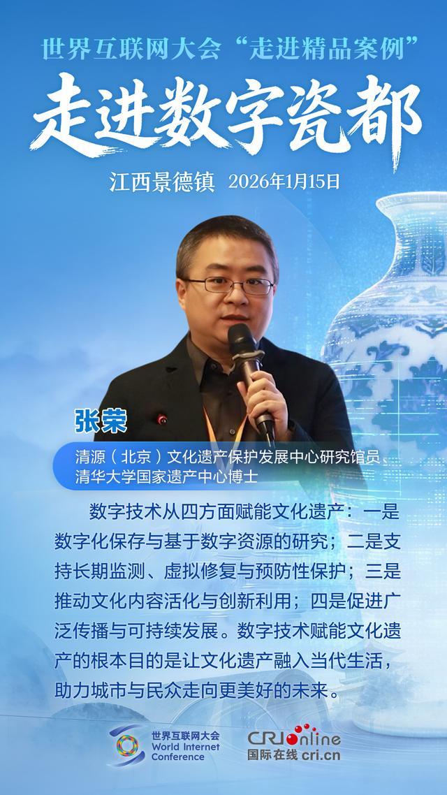 1月15日,世界互联网大会“走进精品案例”之“走进数字瓷都”活动在江西景德镇举行。各方嘉宾汇聚一堂,围绕数字技术赋能文化遗产保护展开深度对话,分享全球实践经验。他们有哪些精彩观点?一起来看!
