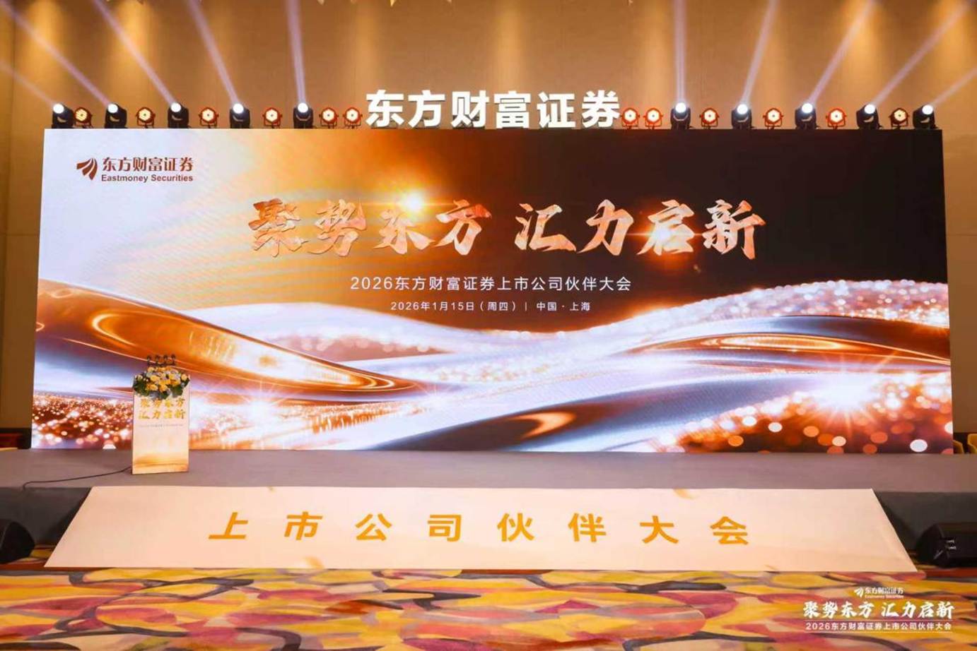 1月15日,“聚势东方汇力启新”2026东方财富证券首届上市公司伙伴大会在沪举办。作为东方财富证券重磅打造的高质量互动交流平台,本次大会以“凝聚共识、携手共进,在变局中把握先机”为宗旨,200余位上市公司高管、知名专家学者齐聚一堂,围绕宏观趋势、生态服务、治理深化展开深度对话,共筑产业与资本协同新生态。