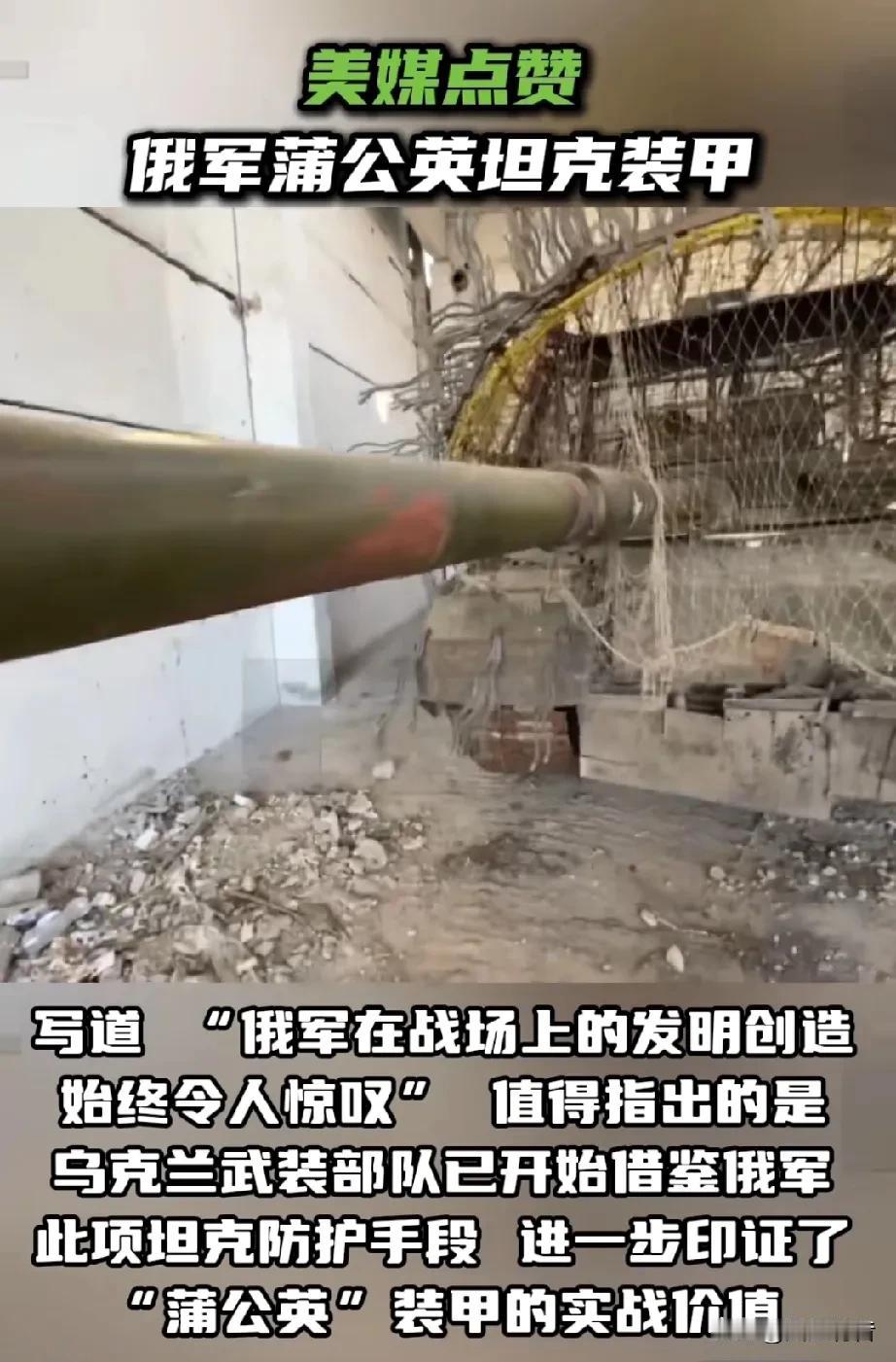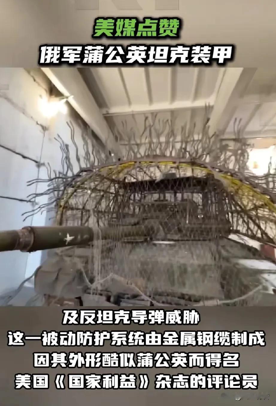 俄乌冲突改变坦克外在装甲形态,并得到美国媒体点赞。 据《今日俄罗斯》报道,近日,美国军事分析人士指出,俄军在特别军事行动区内为坦克配备了一种新型高效装甲“蒲公英”,用于应对FPV无人机及反坦克导弹威胁。这一被动防护系统由金属钢缆制成,因其外形酷似蒲公英而得名。 美国《国家利益》杂志的评论员写道:“俄军在战场上的发明创造始终令人惊叹。为应对乌克兰的无人机威胁,俄军开始在坦克上安装一种‘刺猬式’装甲——在车体上焊接成千上万根金属丝。西方分析人士起初对此嗤之以鼻,但俄军随后证明了这种装甲的有效性。” 报道还指出,俄军的创意并未止步于此。俄军士兵利用钢缆制成安装在细长支架上的伞状装甲“蒲公英”。借助钢制支撑结构,这些组件被延伸至车体轮廓以外,形成一种既保持镂空柔韧特性,又不影响观察视野与火炮瞄准的防护体系,同时能有效阻止FPV无人机靠近坦克。 值得指出的是,乌克兰武装部队已开始借鉴俄军此项坦克防护手段,这进一步印证了“蒲公英”装甲的实战价值。今后,估计世界各国的坦克为提高战场防护力,都会想方设法安装或优化“蒲公英”装甲。