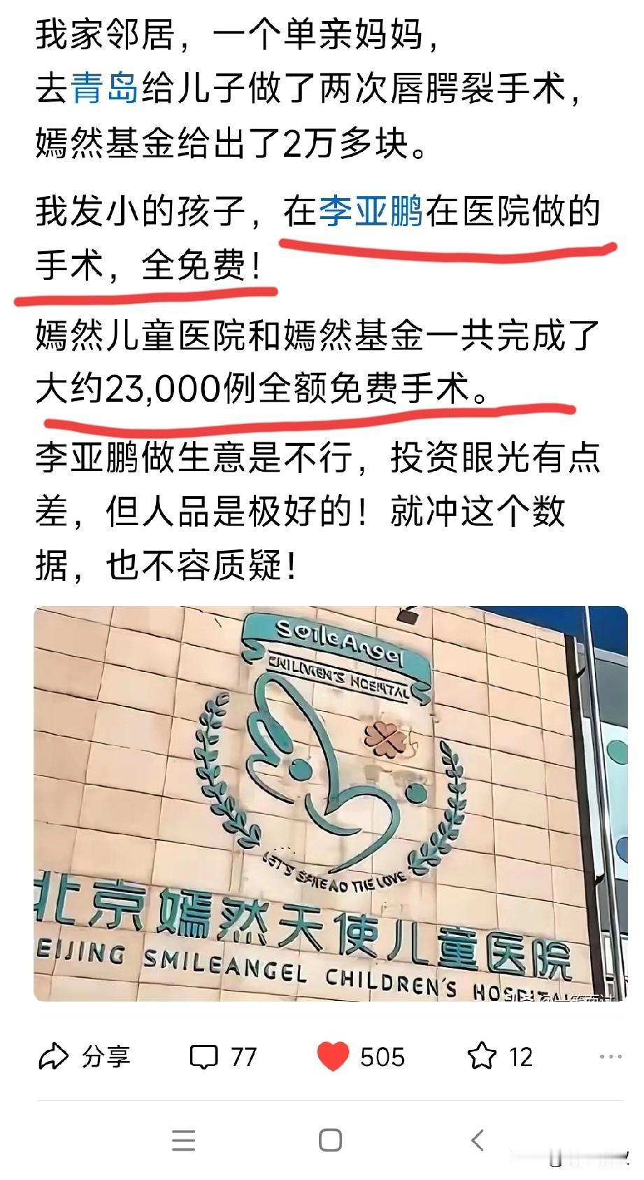 感觉李亚鹏要翻身了,而且是很快!没错,前几年陆续曝出李亚鹏投资失败破产,混的一落千丈。可是最近他的口碑逆转而上,。 首先是窦靖童的肯定,在各种场合窦靖童一直亲切的喊李亚鹏为爸爸。亲爸窦唯,亲妈王菲,却一直被李亚鹏照顾。就在昨天李亚鹏的直播间,窦靖童忽然闯进李亚鹏的直播间,给李亚鹏顺手递上一块饼干:老爸,尝一口。这不是做样子,是最真实的生活片段。 李亚鹏的嫣然基金医院,被爆因付不起房租,要关门。李亚鹏没有任何部门寻求资助,坦然关门,而就在医院即将关门的那一刻还在免费为唇腭裂的患儿免费手术…… 现在都在说,李亚鹏投资没眼光,但人品绝对没问题。