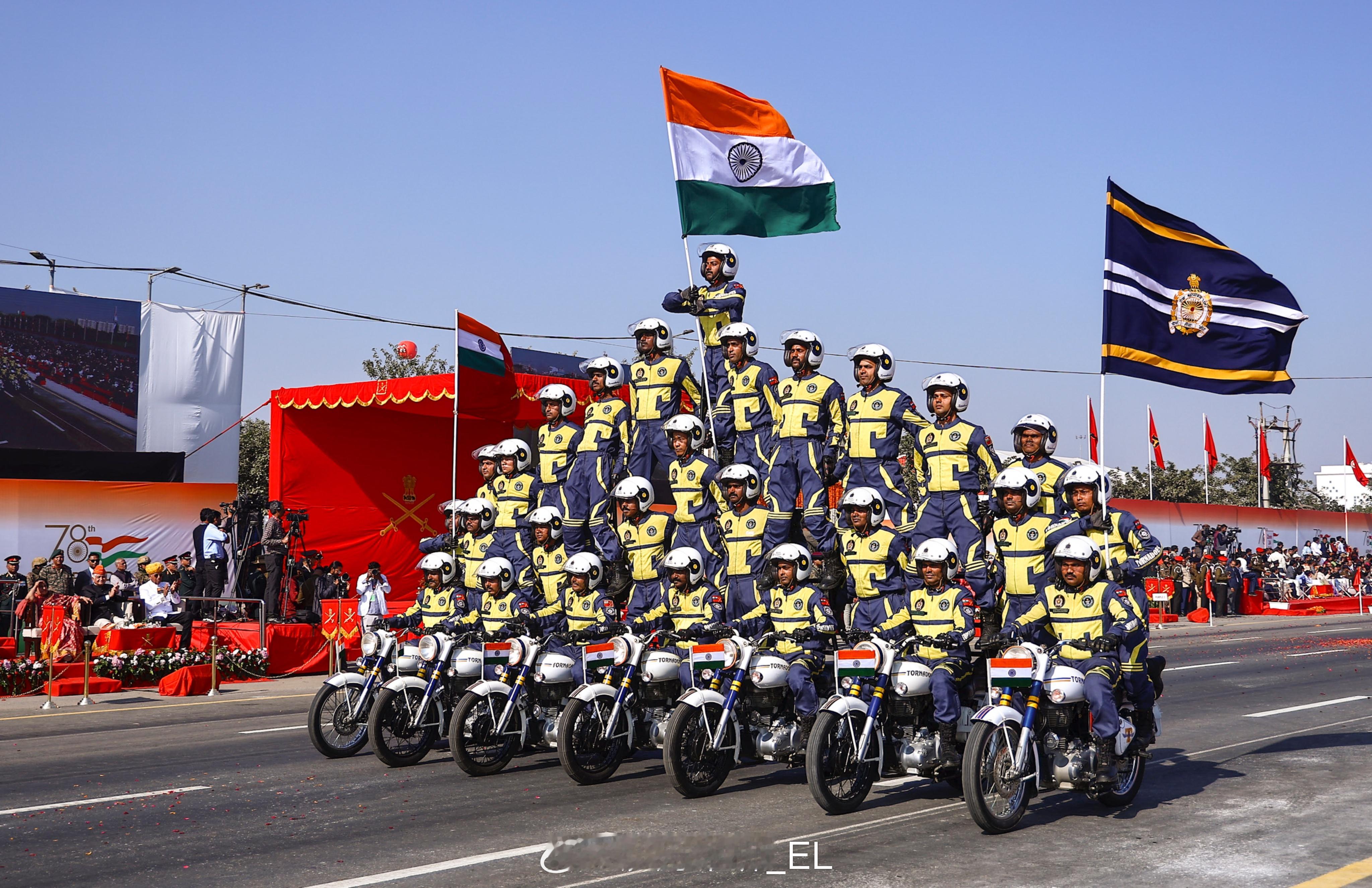 昨天印度的阅兵,摩托车叠罗汉的保留节目还在。
