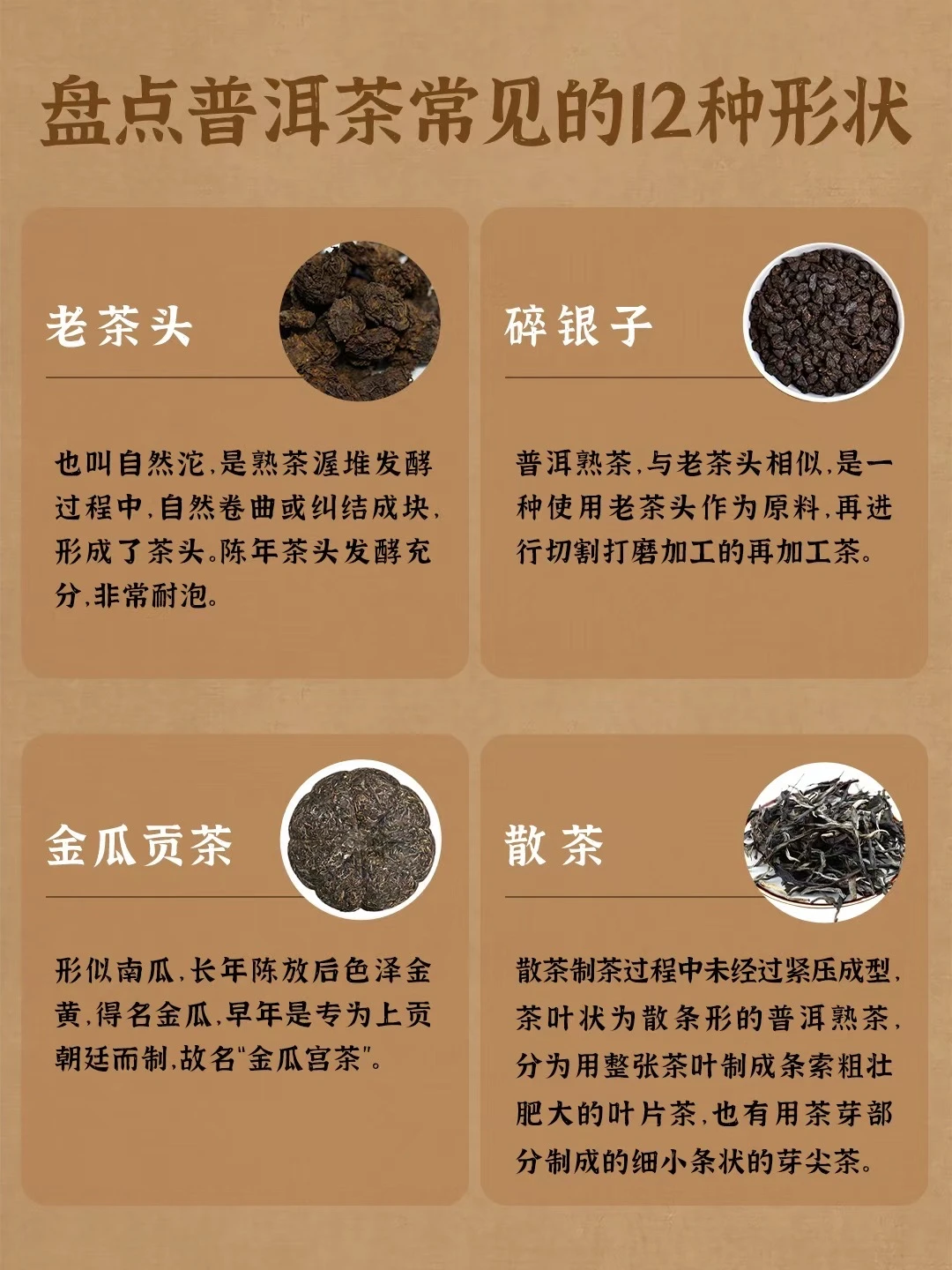 普洱熟茶,与老茶头相似,是一种使用老茶头作为原料,再进行切割打磨加工的再加工茶。