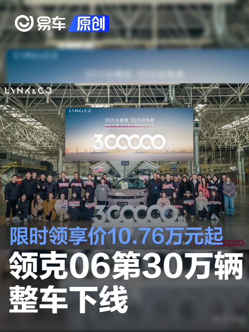 易车讯1月16日,在领克成都智能互联汽车工厂,领克06第30万辆整车正式下线,这是领克06自2020年上市以来又一重要的里程碑时刻。
