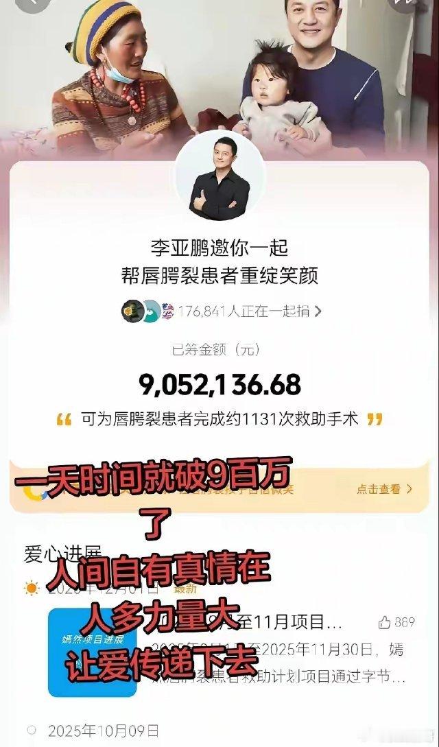李亚鹏开播了!直播间礼物飘不停,他眼眶红红的说着,这两天确实被感动到了,这些网友温暖了他的内心!他也阻挡不了网友想刷礼物的心,但请网友们放心,这些刷的礼物他都会妥善安排!他应该能想到人气会很高,但没想到居然9万➕在线,而且网友们接力捐款这点更让他震撼,短短几天,网友们捐款900多万,他说这些钱可以帮助1000多个孩子做唇腭裂手术!众人拾柴火焰高,今天刷到的视频都是网友们自发在捐款,你10元,我20,你100,我1000,一点点的捐出自己的心意!需要帮助的时候,还是普通人在帮助普通人!这个金额,倘若那些明星,大网红,能够“意思”一下估计早都翻倍了吧!