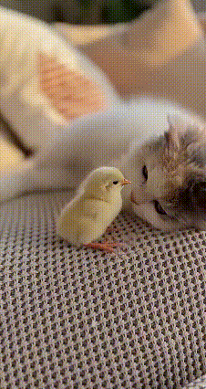 年度最暖名场面!小猫和小鸡抱成一团,离谱又好嗑,万物皆有灵太好哭了😭 谁能