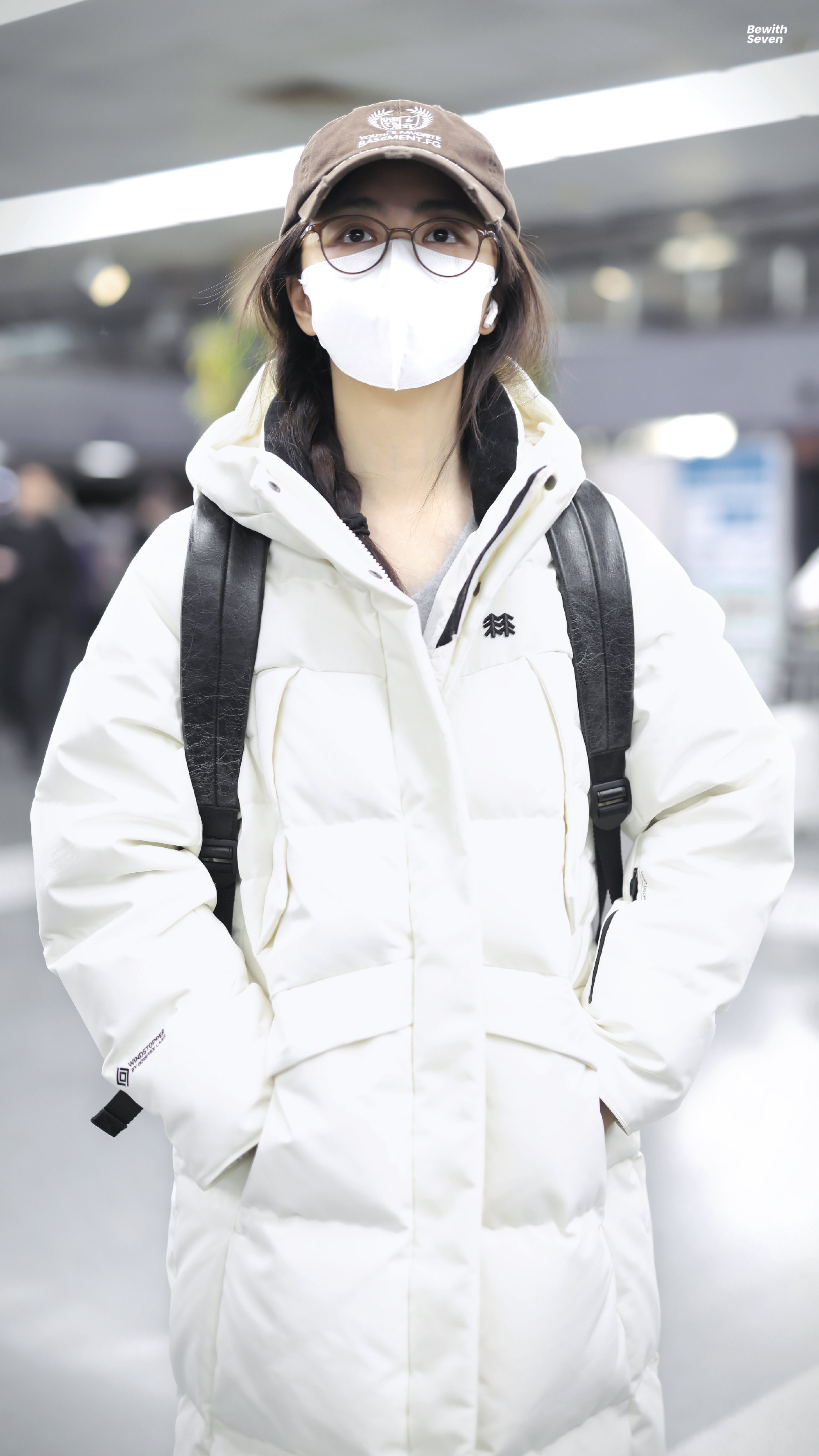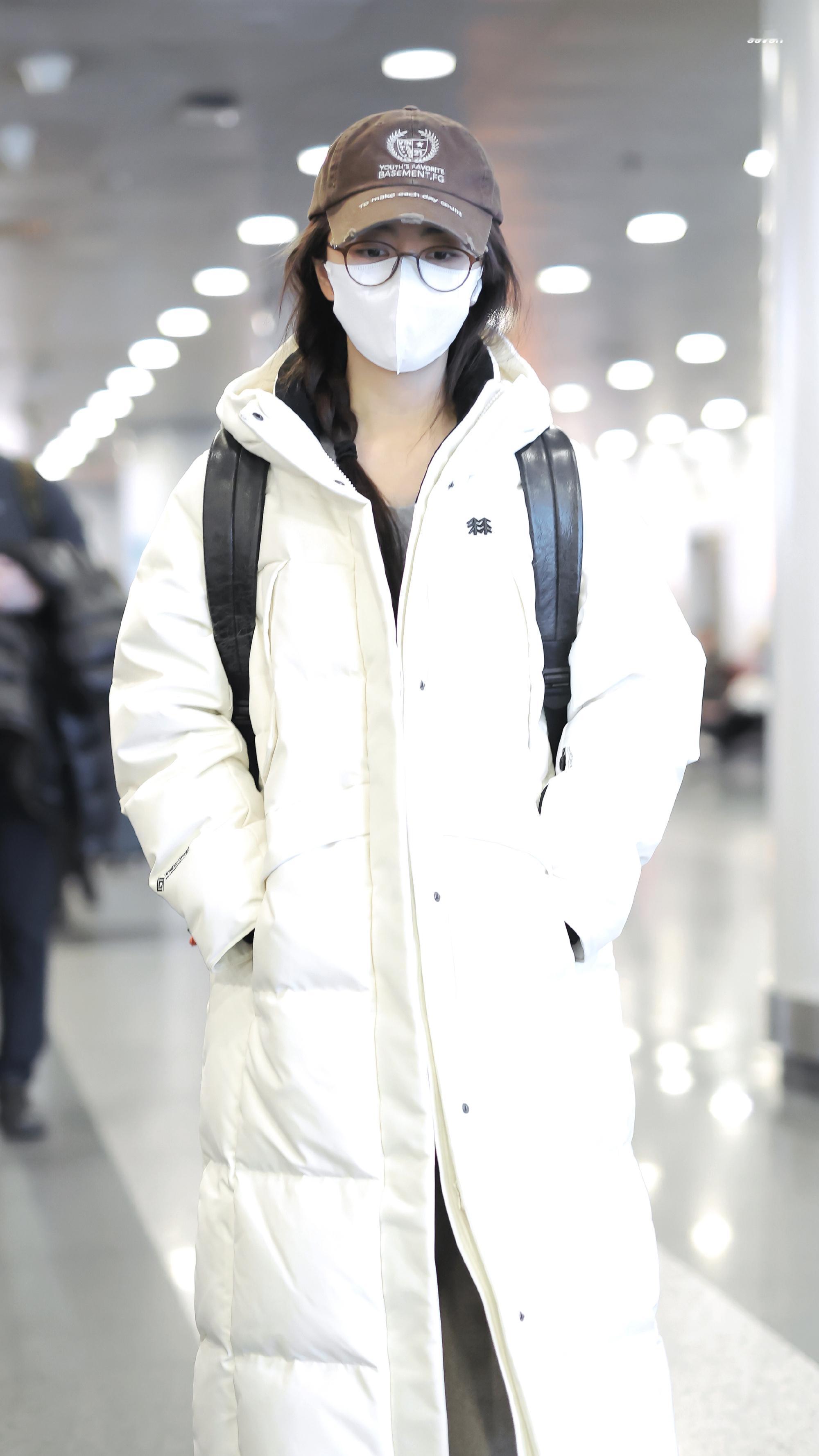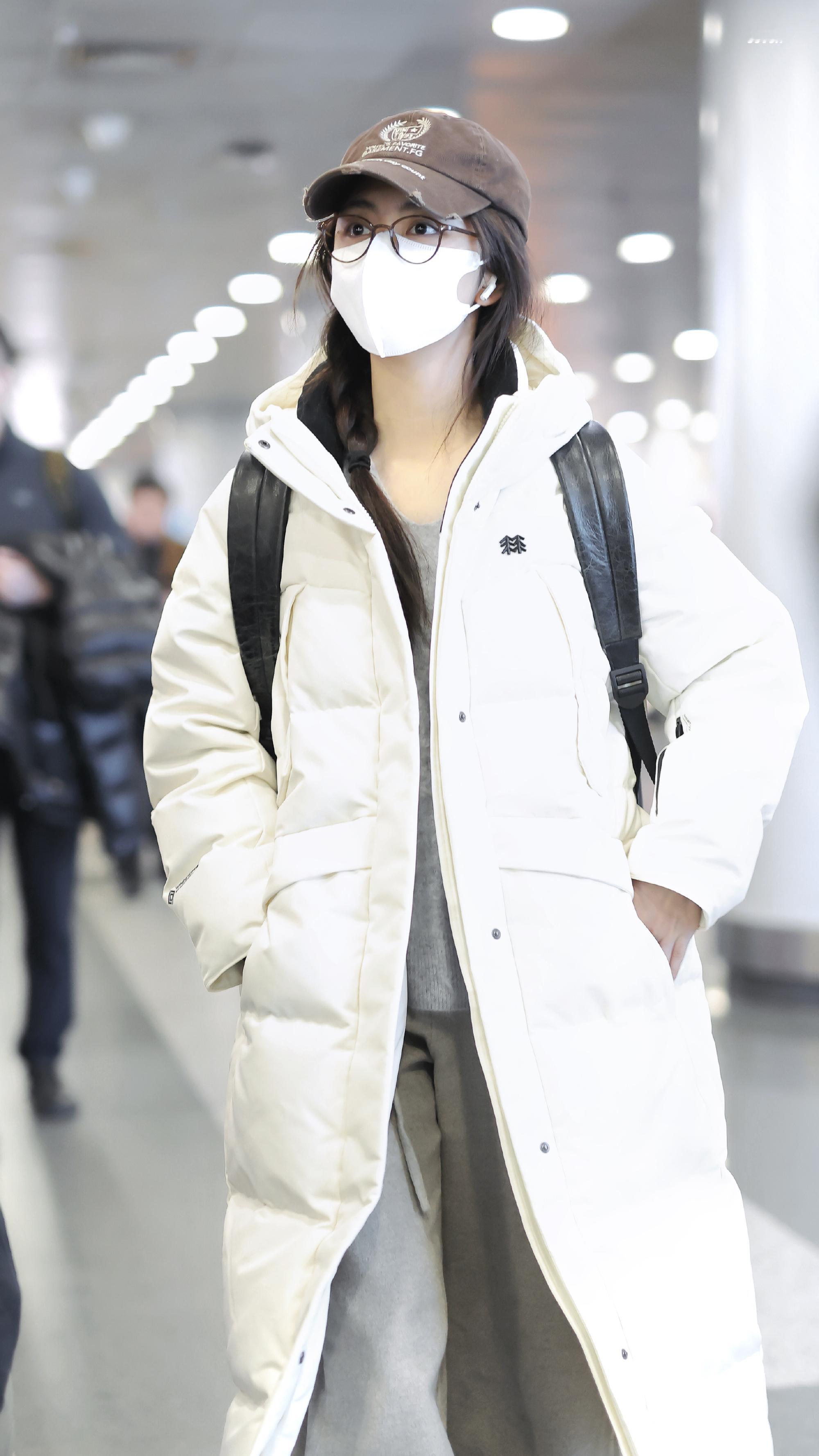 谭松韵女大放假了谭松韵长棉服机场路透 谭松韵今早机场路透✈ 长款棉服与书包简直就