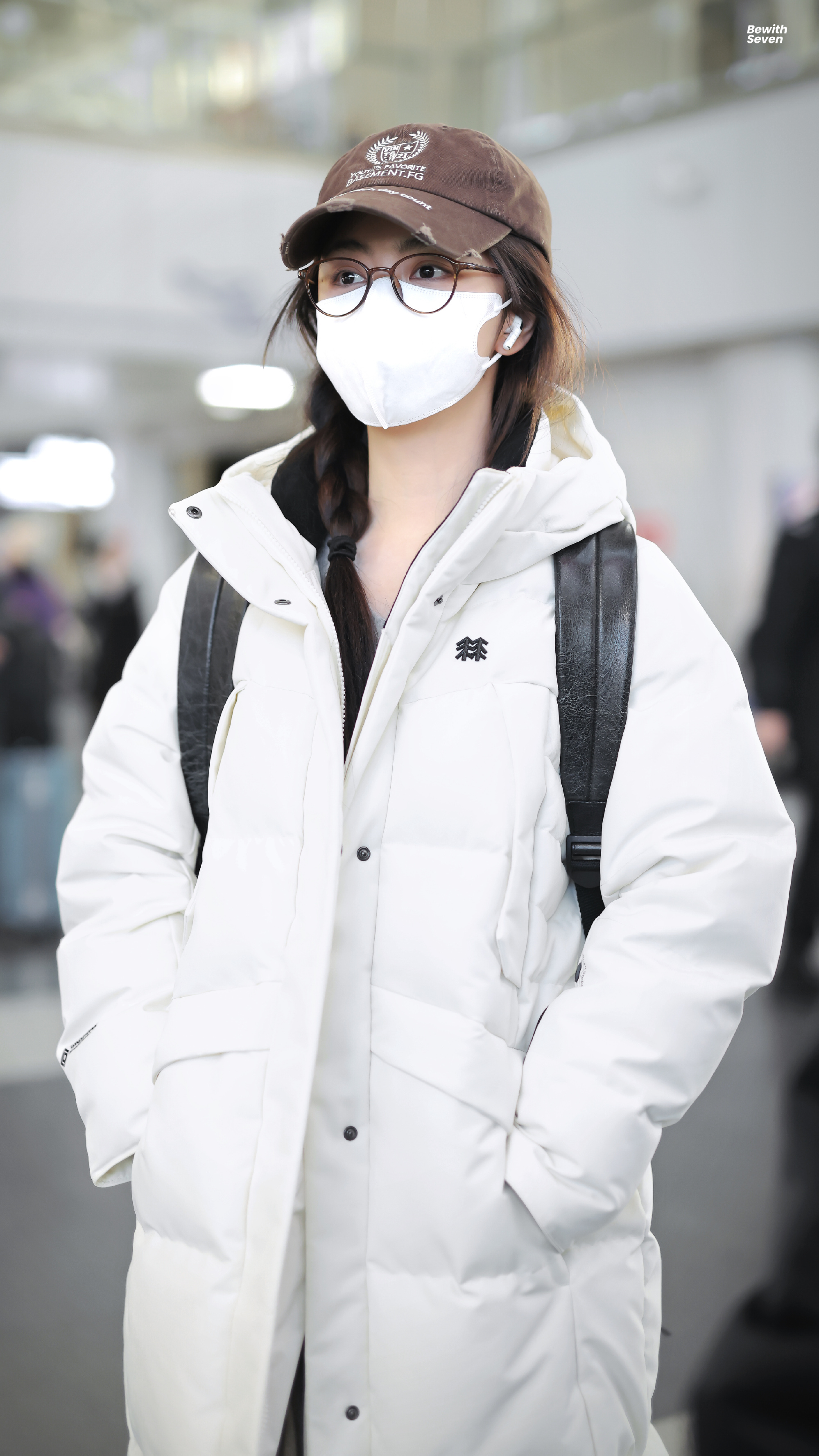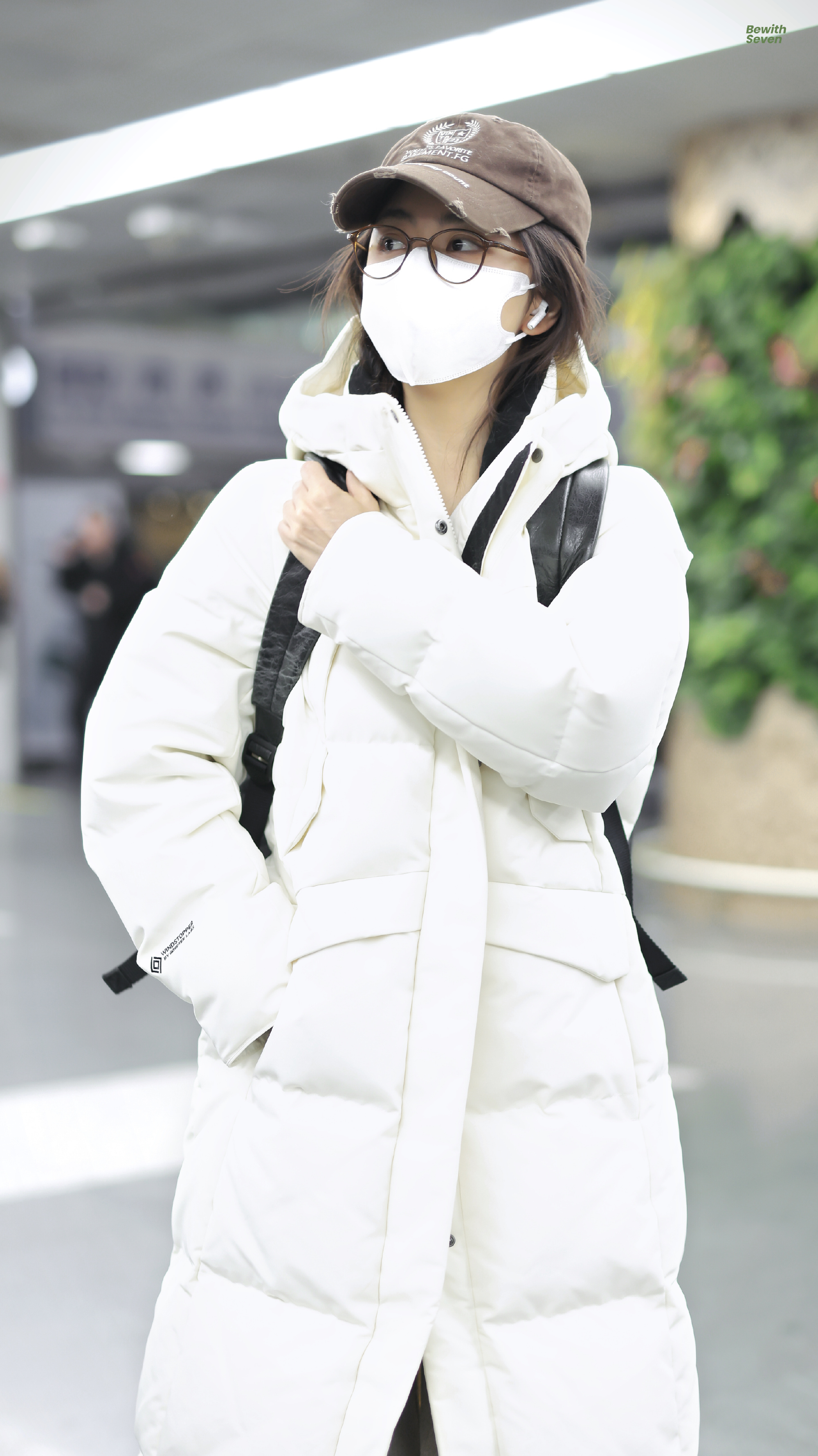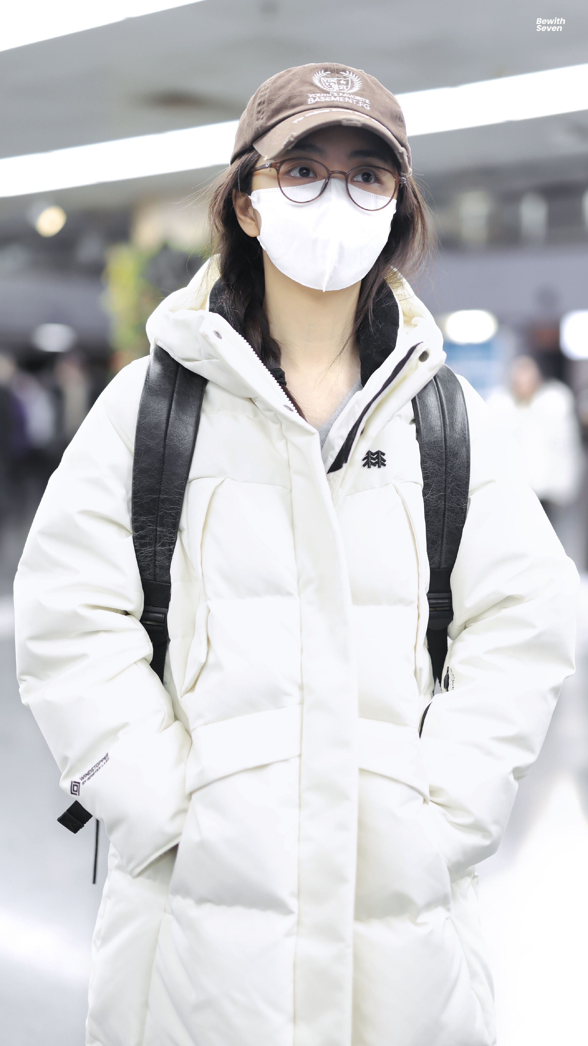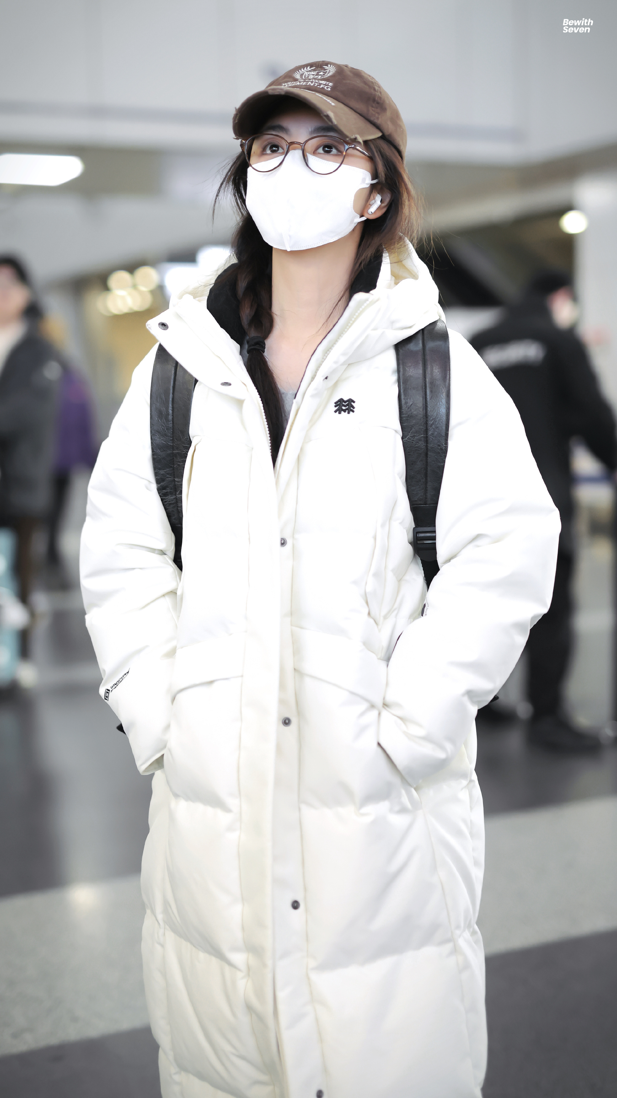 谭松韵女大放假了谭松韵长棉服机场路透 谭松韵今早机场路透✈ 长款棉服与书包简直就