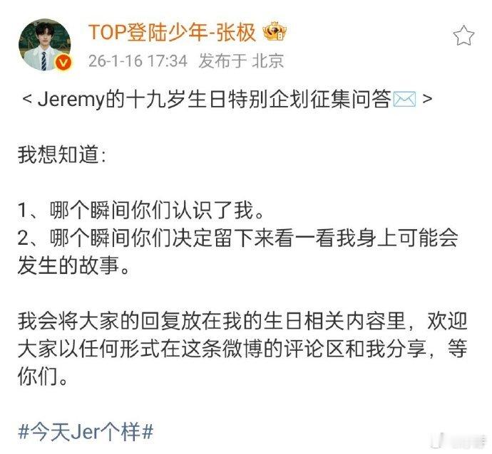 张极十九岁生日特别企划征集问答 救命!张极这是什么神仙爱豆!把生日策划和粉丝紧紧相连,只为听见爱的声音,眼泪直接绷不住了