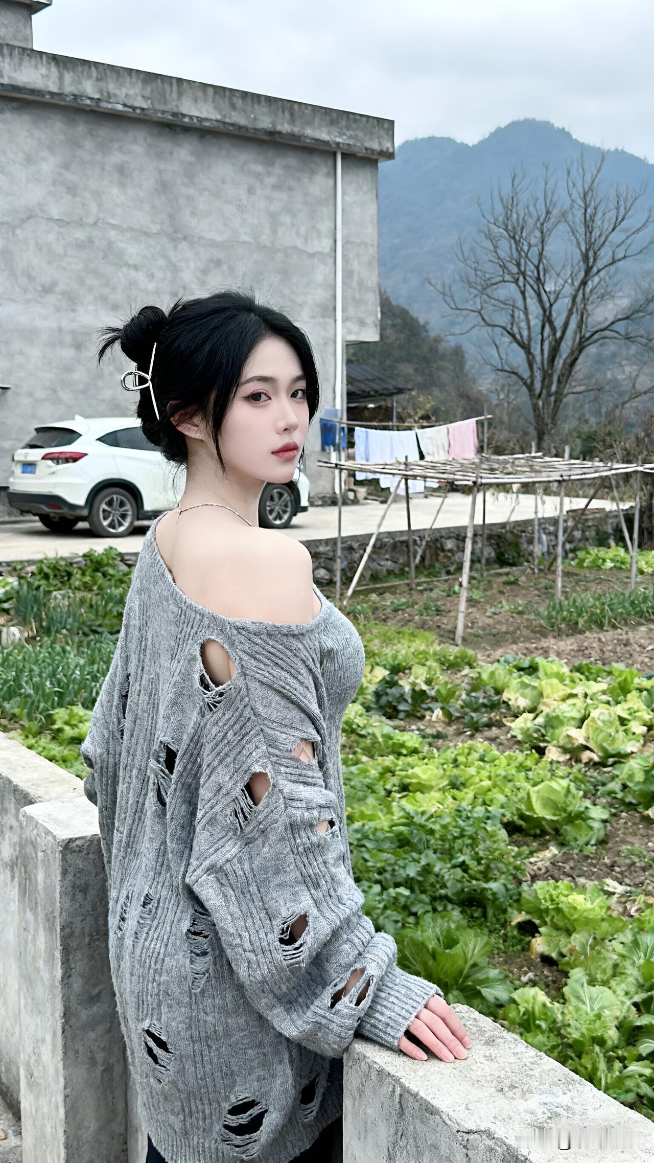 回村穿辣妹装才懂的真相:松弛感不是硬凹出来的 “刚准备回村拍照时真的很天真,以为只要穿件破洞露肩毛衣,就能在土气背景里拍出高级感,毕竟‘反差感出片’是流量密码,理论上没错,可现实太残酷了”; “衣服太松垮会显邋遢,露肩太多又和乡村环境格格不入;就算选对了衣服,也需要自然的状态衬氛围,还要和背景巧妙互动,否则依旧像‘刻意装酷的外来者’”; “总以为‘越夸张越吸睛’,总以为‘反差感越大越有流量’,殊不知乡村风拍照的核心是‘接地气的松弛’。所有让人舒服的乡村辣妹照,都需要穿搭、状态、场景的融合,缺一不可”。 乡村辣妹 松弛感穿搭 回村拍照 氛围感