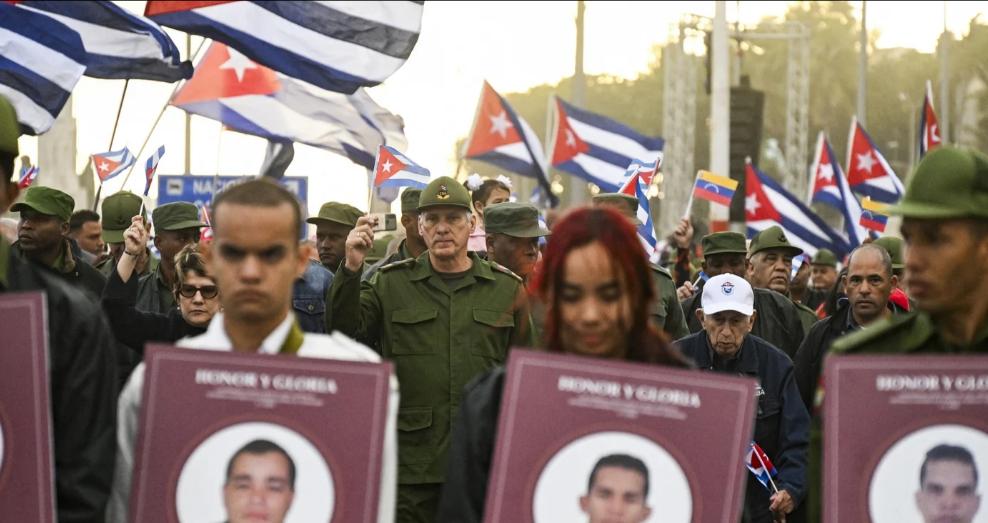 古巴哈瓦那街头,军人们手捧着32名在委内瑞拉献身的士兵遗像,供民众致敬。古巴领袖劳尔·卡斯特罗出席了这一仪式。这其中,有21名士兵来自古巴内政部,该部负责监督情报部门,其余人员都是古巴武装部队人员。 古巴当局强调,这些士兵在美国轰炸和美国特种部队的突袭中“战斗到最后一颗子弹”,并且美国“永远无法买到古巴人民的尊严”。