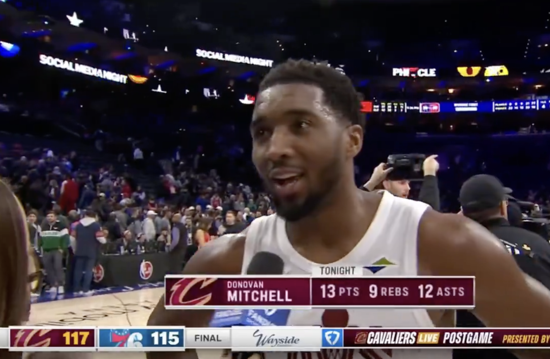 赛后骑士球员多诺万-米切尔接受了记者采访,谈到了杰隆-泰森,米切尔表示:“就是这孩子,哇,这孩子真不一样,太特别了。当然,作为团队我们完成了该做的事,我们顶住了风暴,每个人都站了出来,而他是引领者。他投入了时间,付出了努力,我不知道还能说什么。”