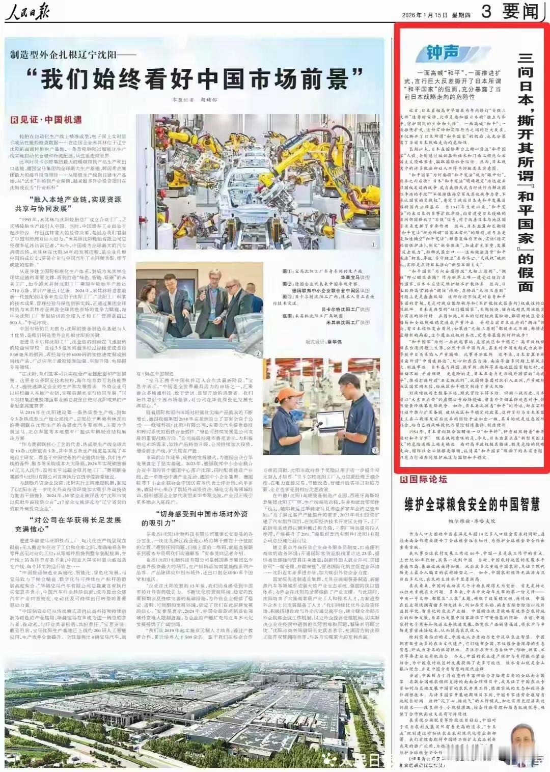 《人民日报》钟声再起—— 《三问日本,撕开其所谓“和平国家”的假面》。