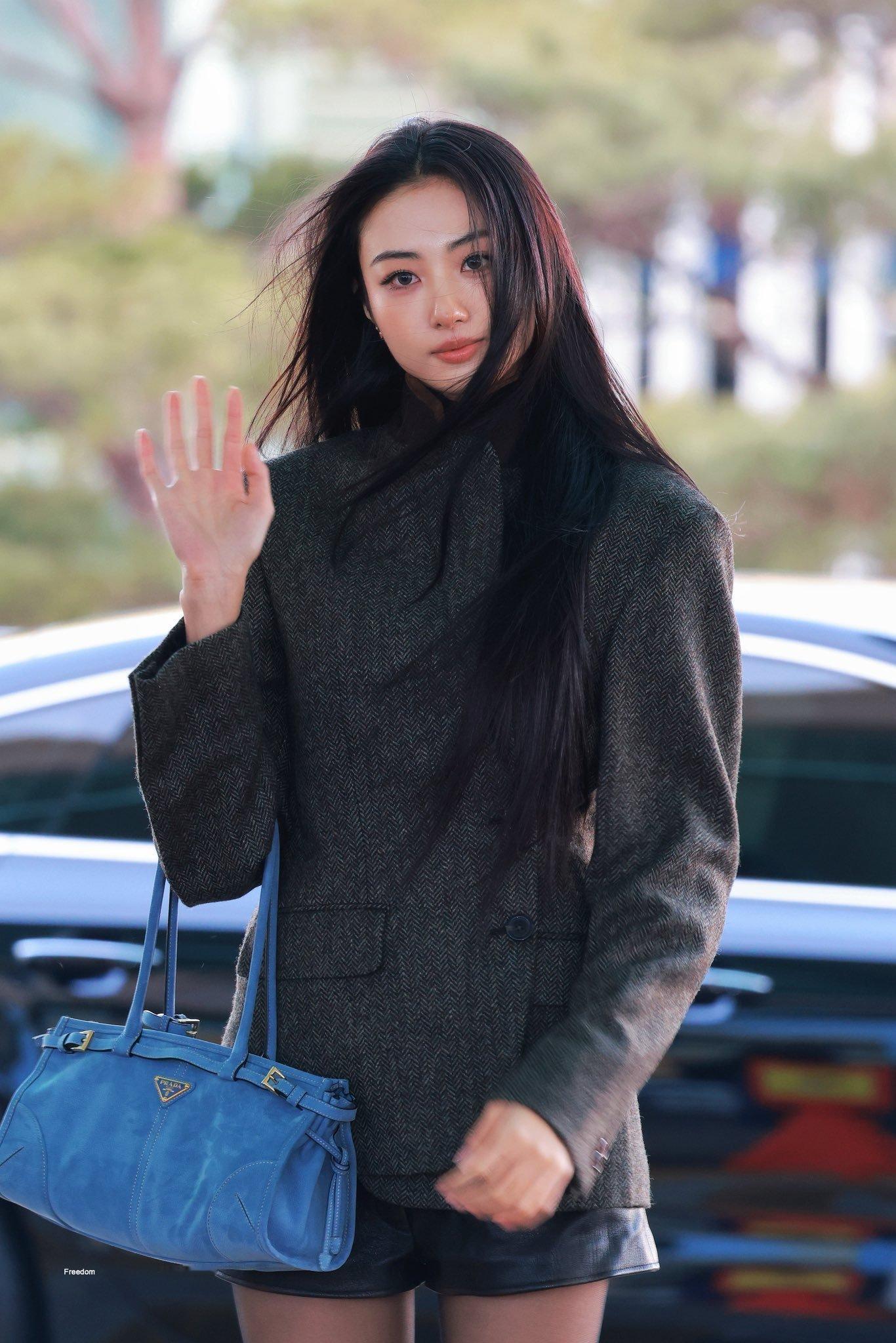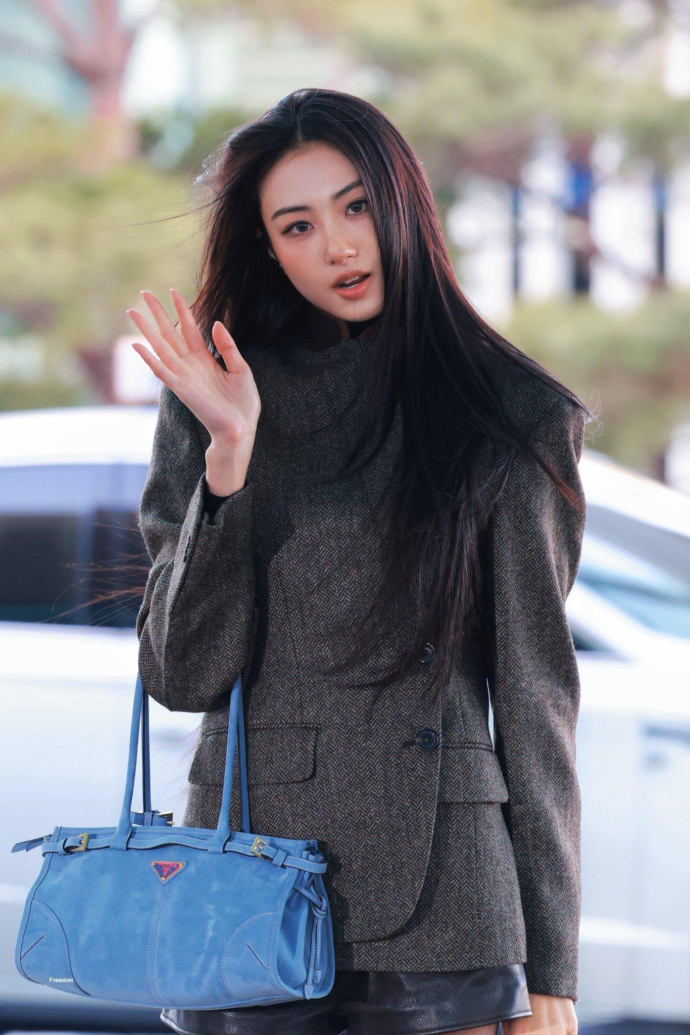 今天姐感超浓的MEOVV Gawon米兰时装周出发机场饭拍🐈⬛