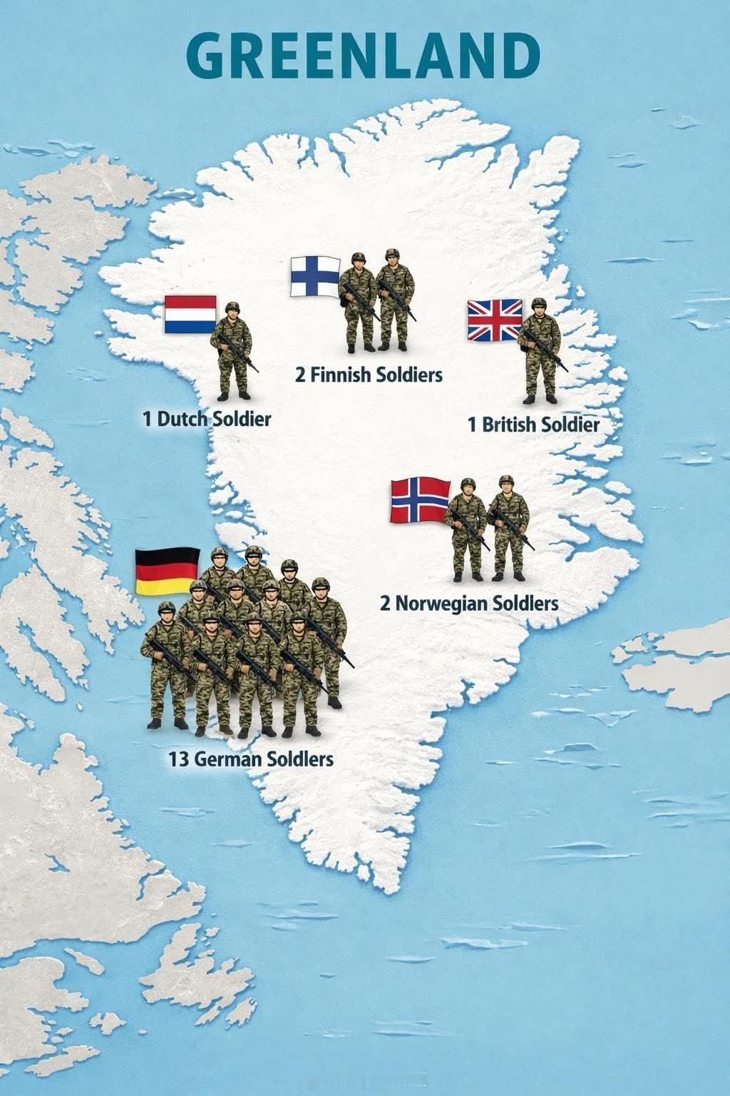 自从美国又一次明说要吞并格陵兰之后,欧盟吓疯了,紧急派遣高达一个排的联合兵力,对格陵兰进行增援部署。分别是:法兰西15人,德意志13人,瑞典3人,挪威2人,芬兰2人,不列颠儿1人,荷兰1人。外加丹麦增援的两条雪橇犬。欧盟用八个国家共一个加强排的兵力,去北美大陆挑逗老美,想必,这37个人,个个都是奥特曼吧,再次也是X战警欧洲八国联军,居然去北美挑逗匪首。特朗普这已经有点实际要价了——老美就是盯上了格陵兰,你欧洲想不想打赢俄乌了?想打赢,靠我,那就把格陵兰割让给我,我可以勉为其难地支援你们军工产能,万一亚太爆起来军工产能不够怎么办?凉拌,日韩菲拿烧火棍去打,亚太甩了就甩了,但格陵兰必须给我大川王。你欧洲,面对俄乌和格陵兰,你们选哪个?高市早苗对意大利女总理态度冷淡烽火问鼎计划丹麦邀请美国参加格陵兰岛联合军演