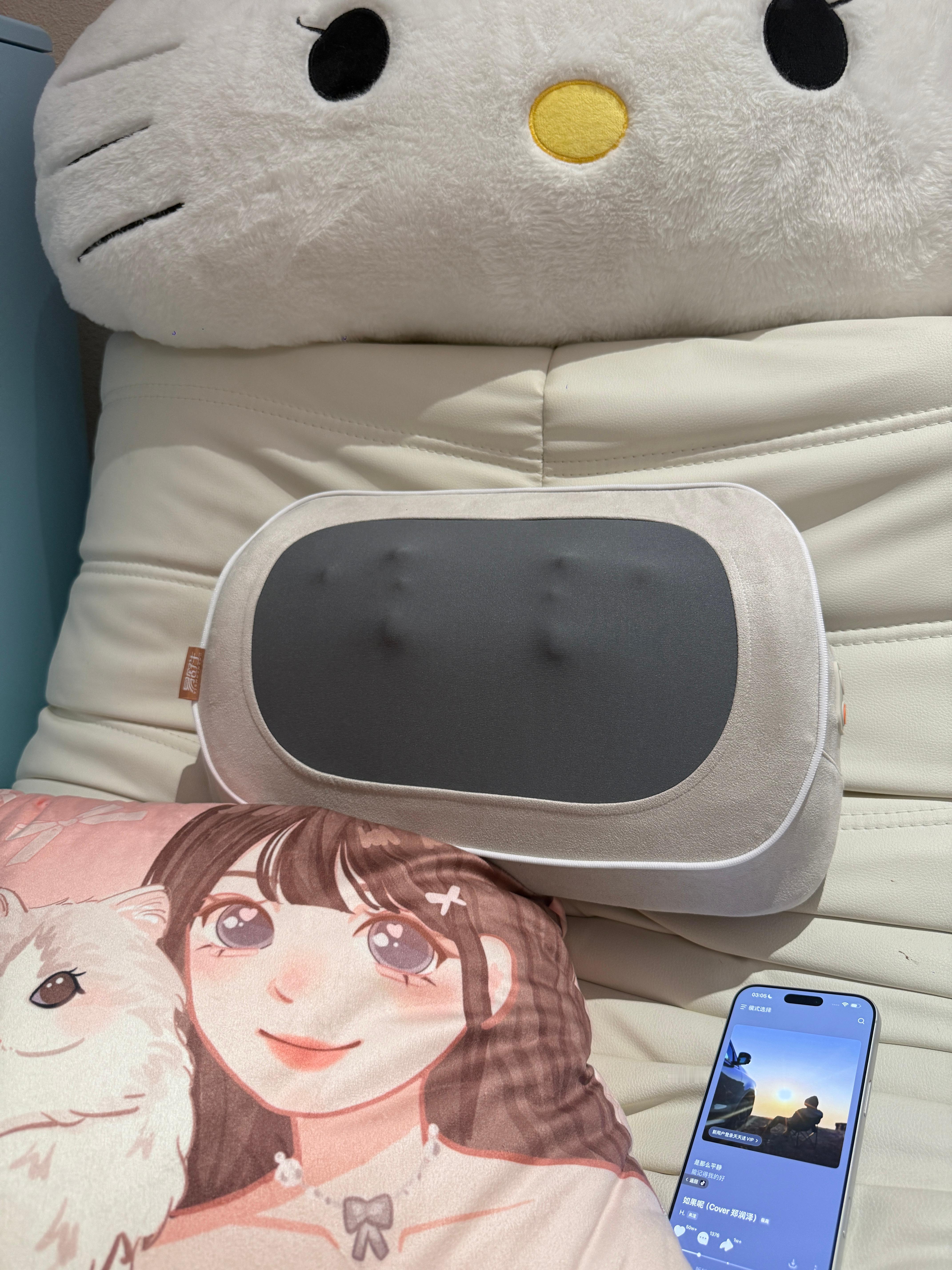 闺蜜们 我还是第一次对按摩枕这么上头!我以前真的真的从来不用按摩枕的 因为压根按不到我想按的点)一般都是去店里按。但唯独这个一用上我就停不下来 现在每天下播后都要绑按个三四遍才行哈哈哈它的力度不是那种单纯敲打 而是像有一双灵活的手把肌肉里头最酸的位置一把“拿捏”住 然后不缺力度的揉捏 尤其按到某个很酸的部位 再配上热敷 jio都能爽到缩起来我还回购了一个给我妈 现在每天边看新闻边用它按摩后腰 按得舒坦了还会哼哼两句小曲儿哈哈 感觉这礼物到她心坎上了 200+真的值了 强烈推荐大家都去试试~