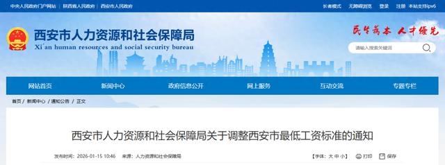 为增加低收入劳动者收入,根据省人社厅《关于调整最低工资标准的通知》(陕人社发〔2026〕4号)要求,现就我市最低工资标准调整事宜通知如下: