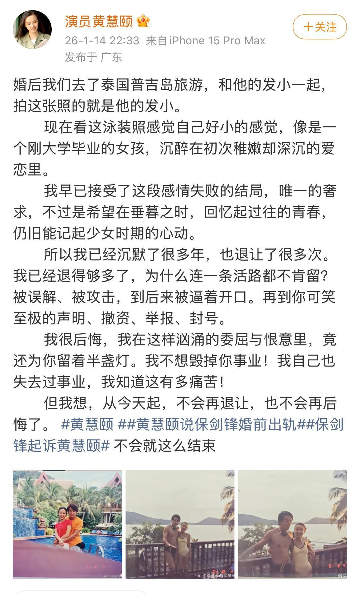 我有一种猜测, 黄慧颐, 爆出和保剑锋结婚证封面, 只是一个开始,后面她如果保剑锋还是不做声,没有任何回应的话,她可能还会爆出更多的关于两人结婚的证据。 毕竟娱乐圈里手撕前任的事情见多了,如果没有足够的把握和证据,最后只会让自己成为笑话。 所以黄慧颐应该已经做好了准备,彻底的毁了保剑锋的明星之路,黄慧颐隐忍这么多年应该是受了不少委屈才会做出这种反应的。 只是不知道接下来保剑锋会作何回应呢?