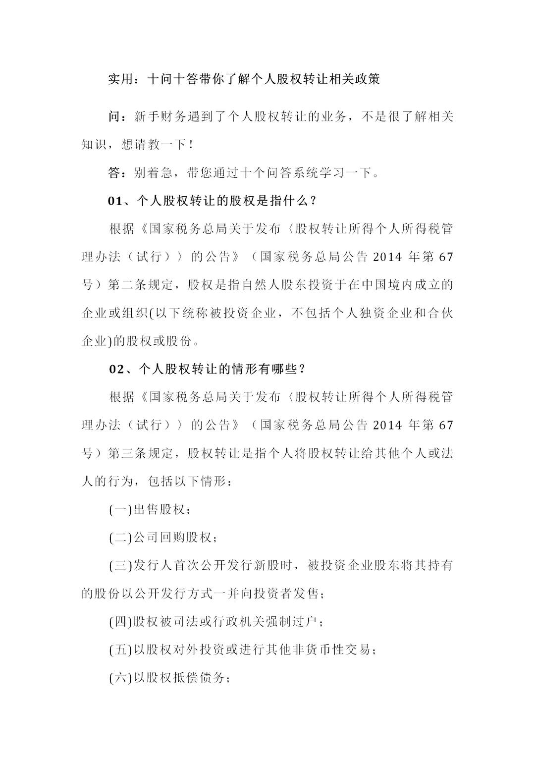 十问十答带你了解个人股权转让相关政策