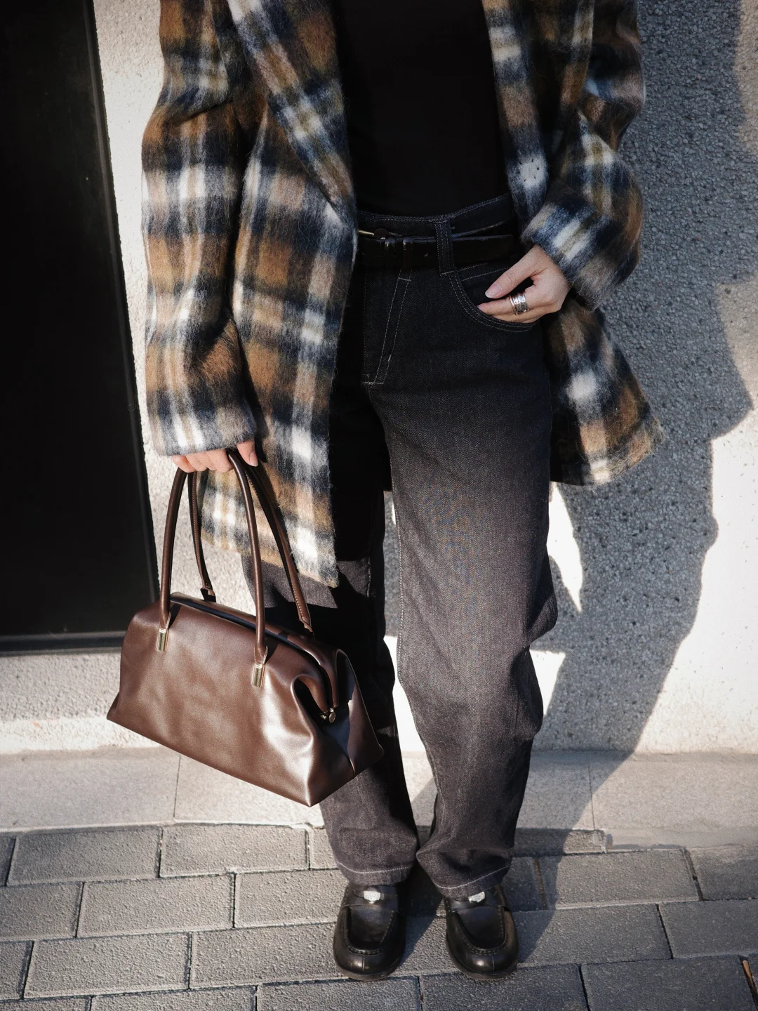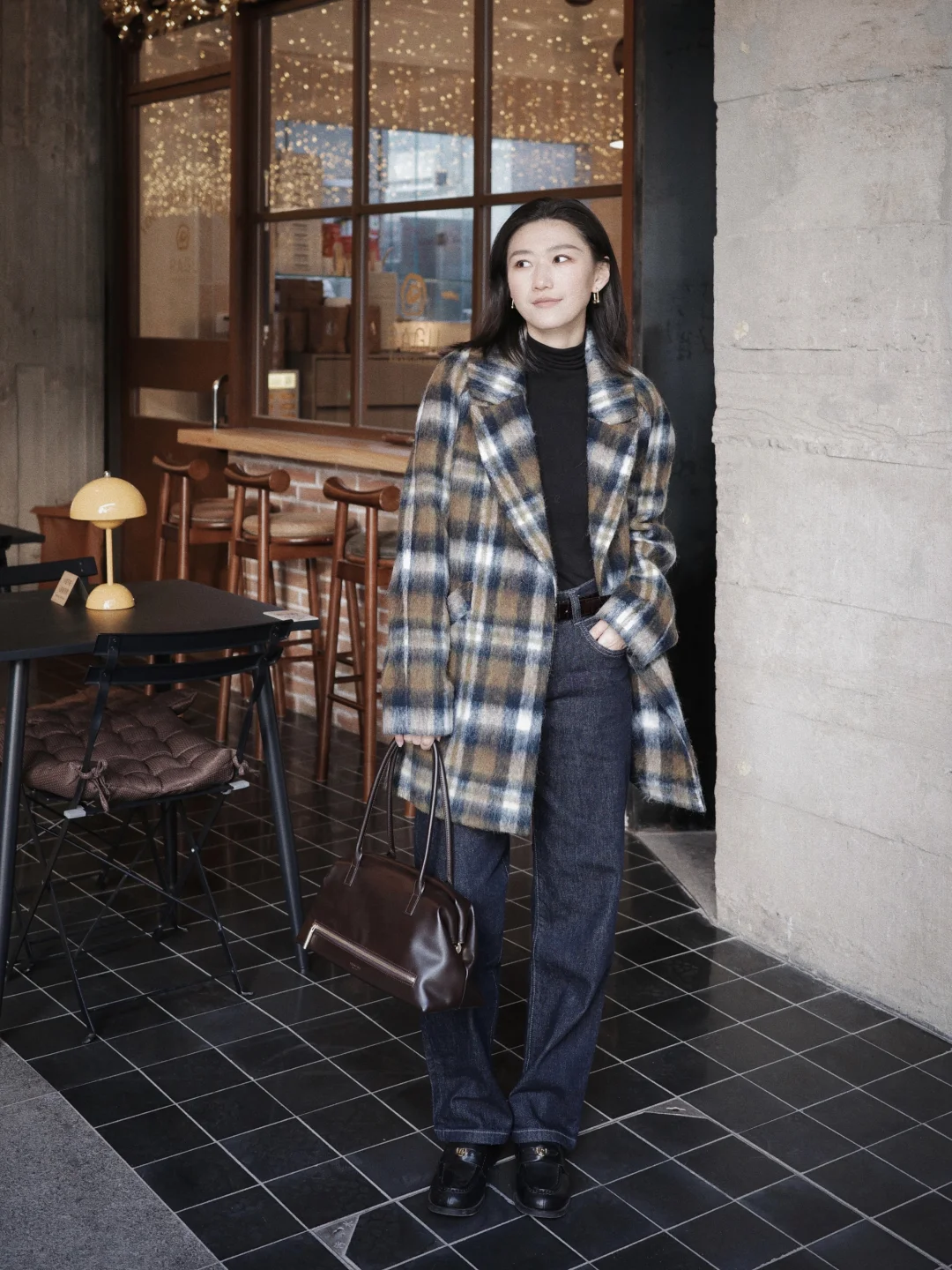 深棕和藏蓝的撞色很法式复古了!