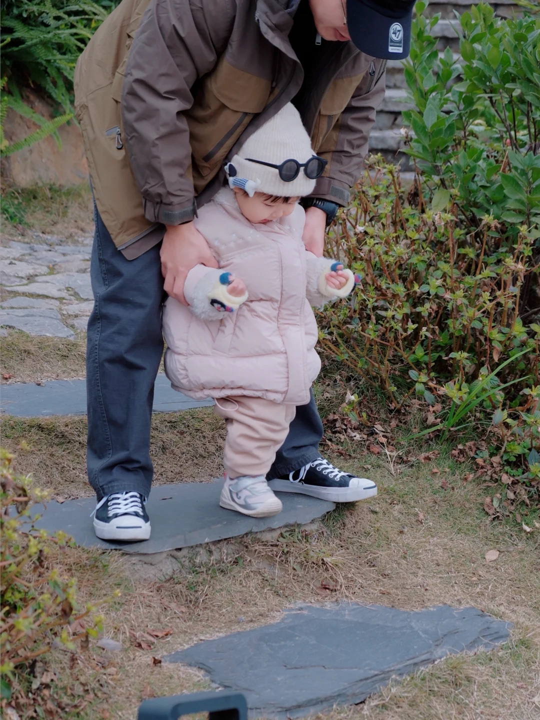 过年的亲子穿搭来一套!太喜欢粉色了,大家都说,年龄越大越喜欢粉色!可能是吧,跟宝宝可以一起穿美美的衣服! ✅穿搭思路: 粉色羽绒服 浅色毛线帽 德训鞋 墨镜 和宝宝一起帅气拍合照~📷