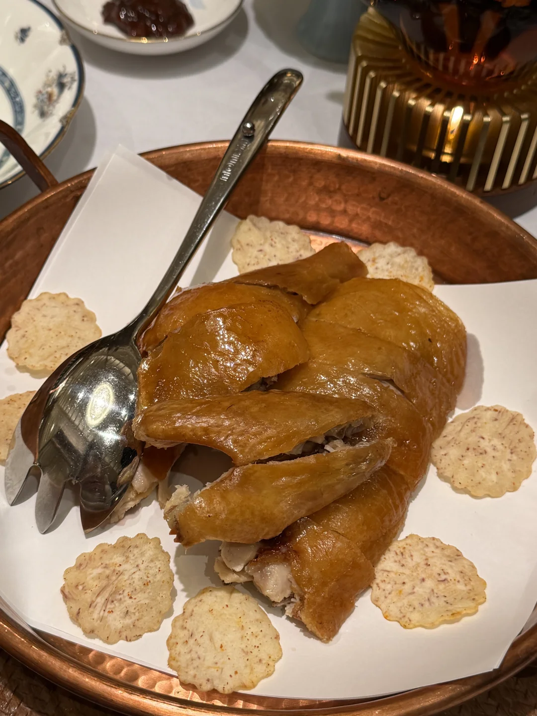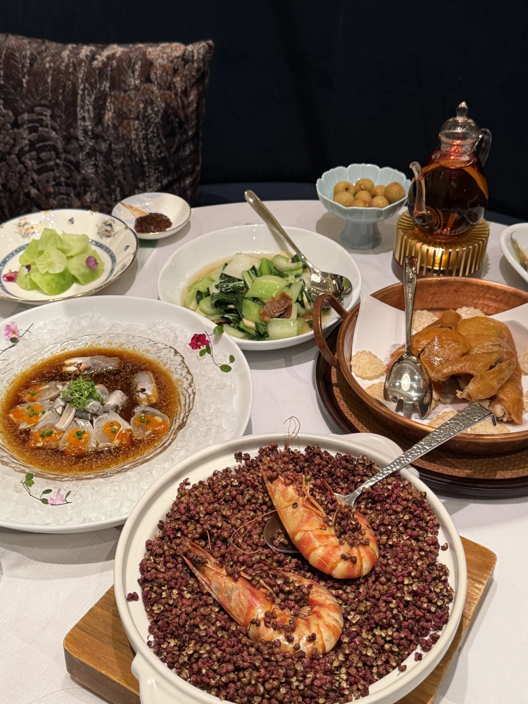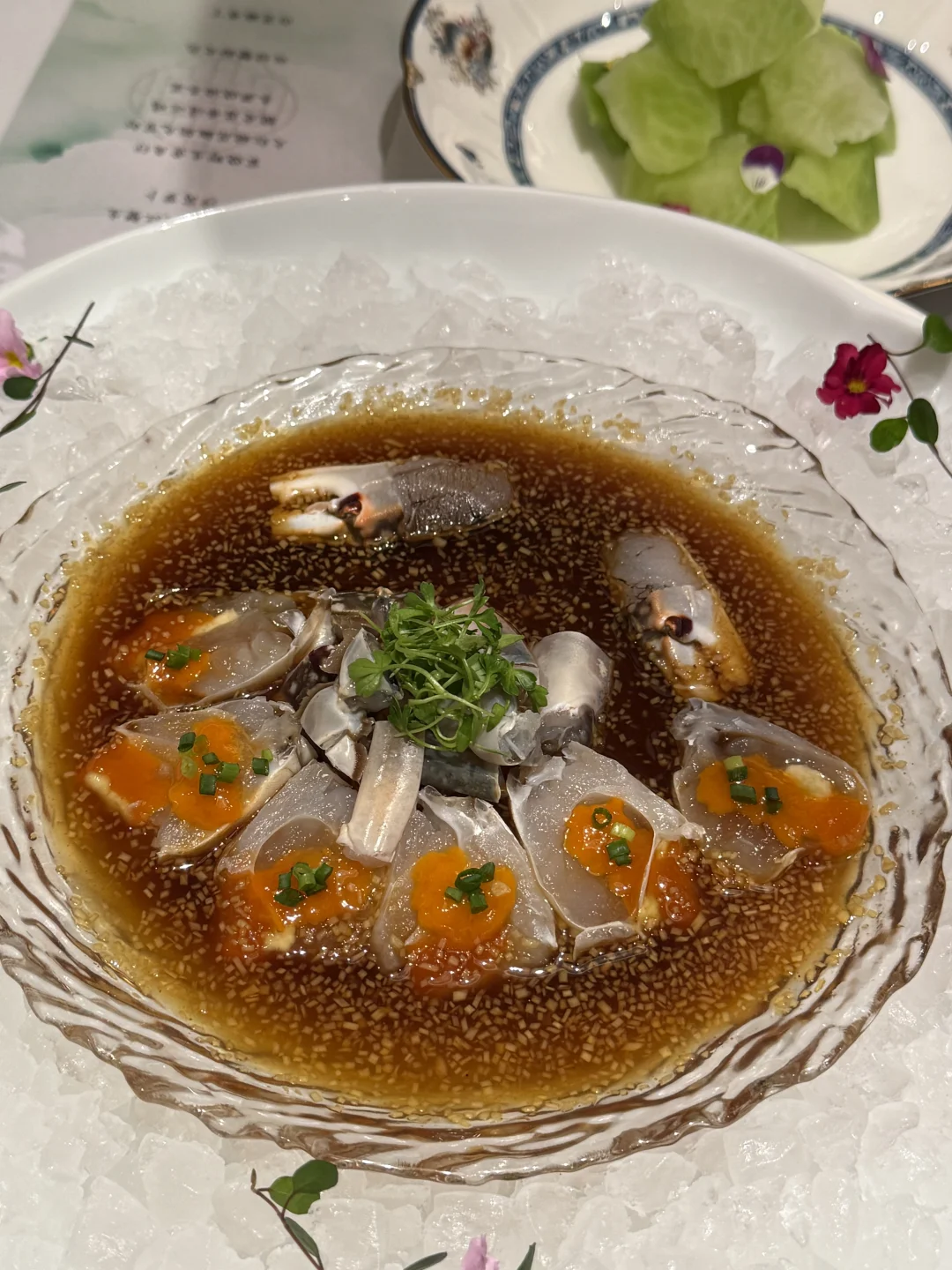 和姐妹打卡西湖边的金丝听海 整体氛围蛮不错的 菜品也比较符合我们的口味 保留食材新鲜本味 又有很多创新元素 大红袍花椒焗九节虾🦐还是第一次尝试这种搭配 江蟹生🦀腌渍入味口感鲜甜 沙窝萝卜🫒是很奇妙的口感 脆皮盐香清远鸡🐔吃了好几块(•͈˽•͈) 总体非常yummy~