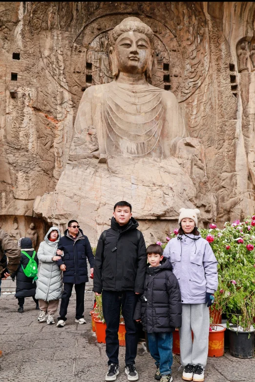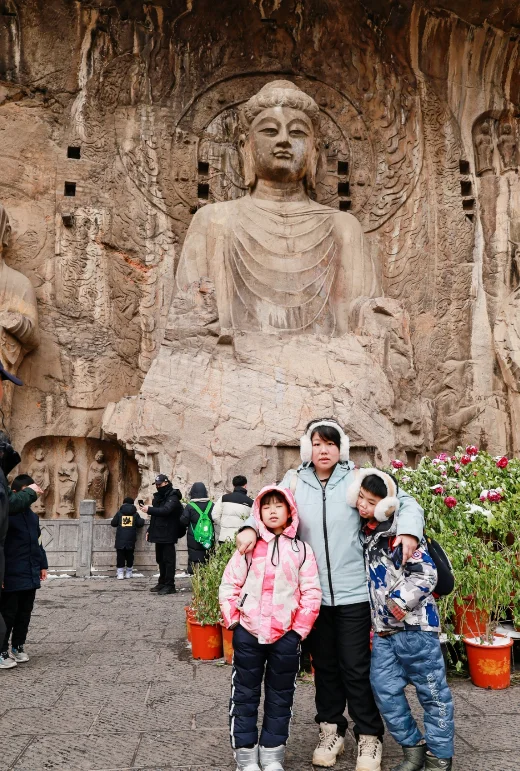 落地直奔龙门石窟核心区[大笑R],跟着讲解触摸北魏佛砖,聆听武则天以自身容貌塑造卢舍那大佛的典故。
