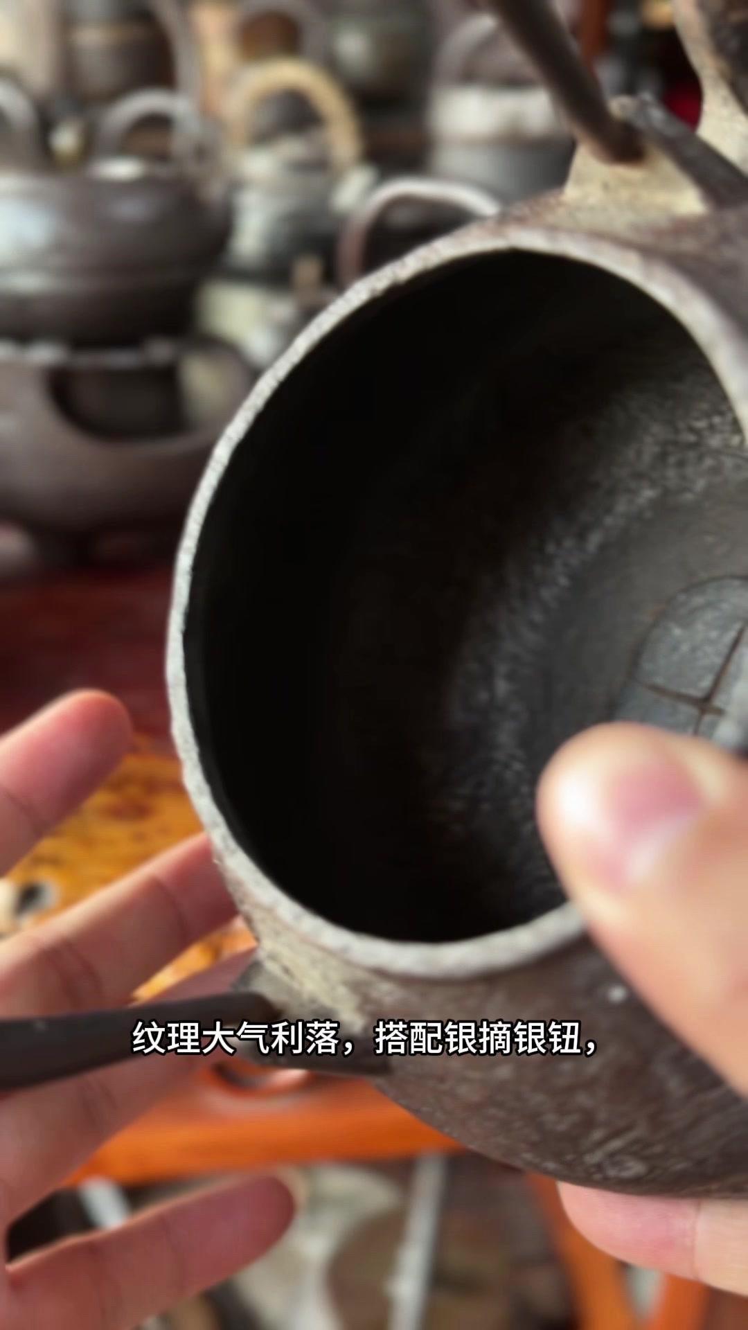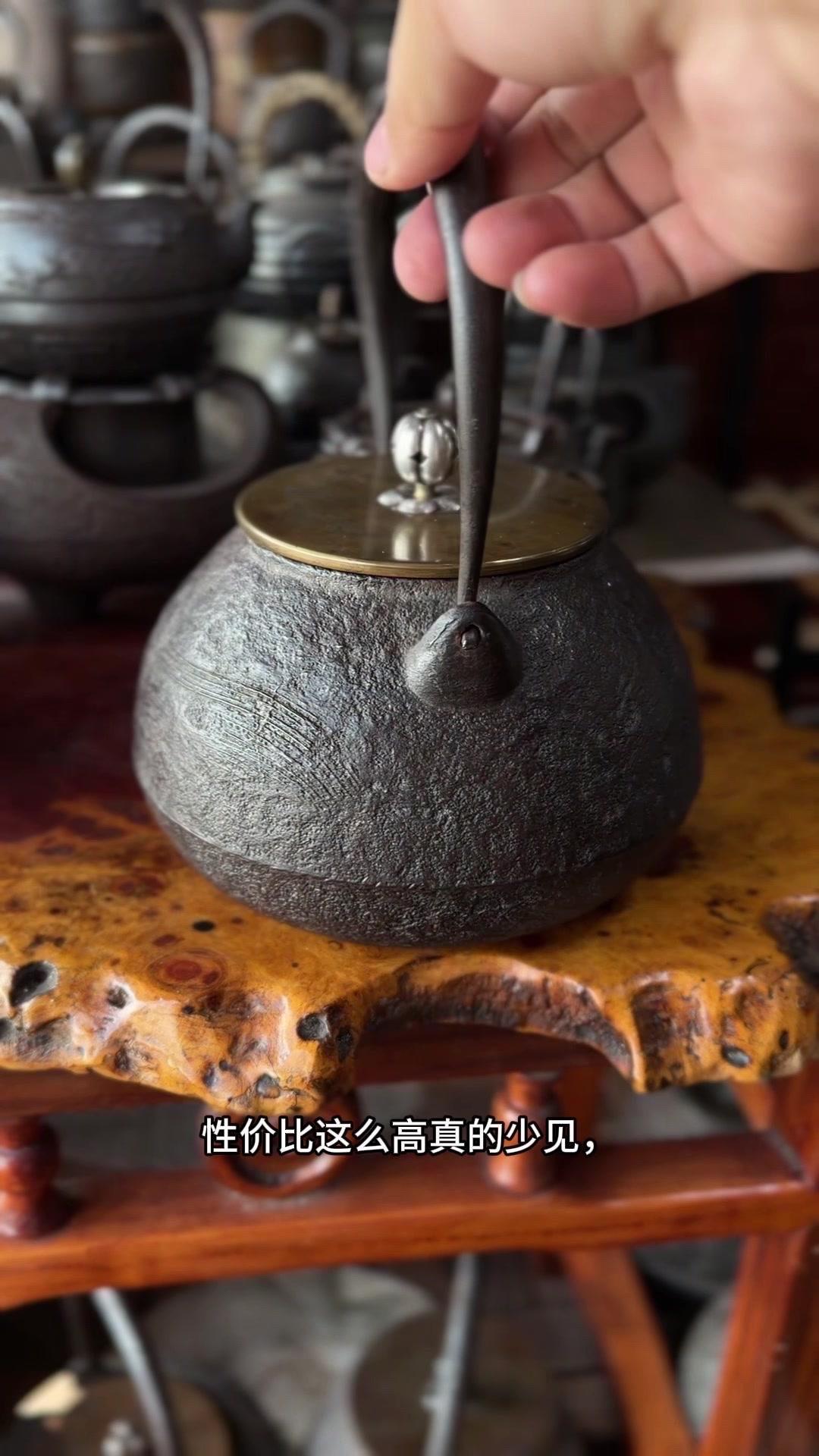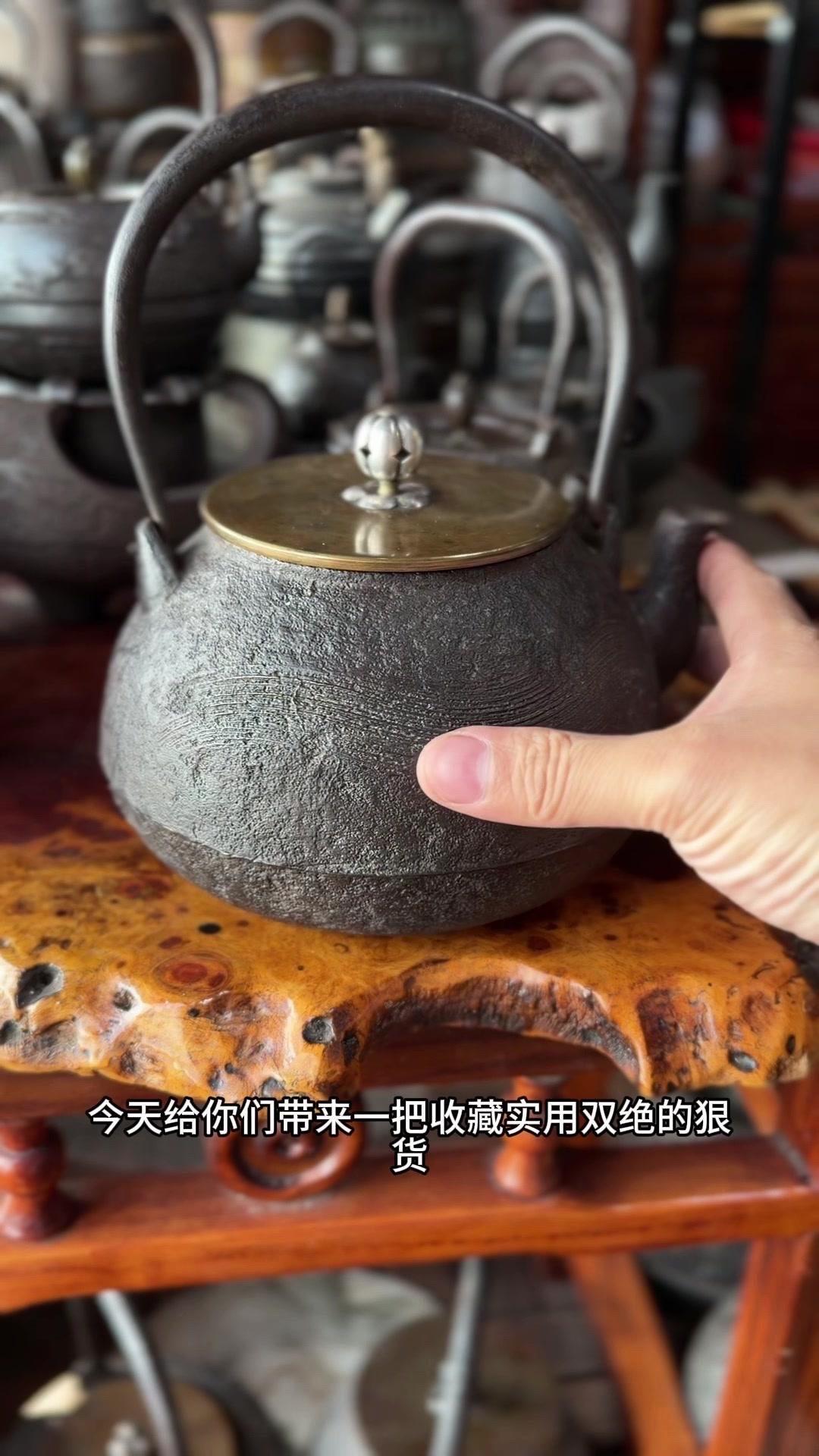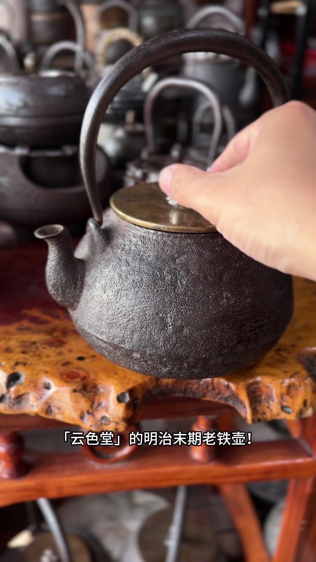 这把壶盖身双款「云色堂造」,落款清晰规整,品相直接拉满。1500cc大容量超实用,总重1582克,盖子302克,上手沉甸甸的,铁质感绝了,摸得到的温润厚实。 壶身是经典刷毛纹,纹理大气利落,搭配银摘银纽,细节处尽显精致质感。最难得的是内里超干净,无锈无垢,原装响片完好,烧水时能发出清脆悦耳的鸣声,茶席氛围感直接拉满。 不用费心打理,收到就能直接用,煮出的水甘甜清冽,不管是日常泡茶还是收藏把玩都超合适。百年匠心传承的老物件,性价比这么高真的少见,懂行的朋友可别错过了。