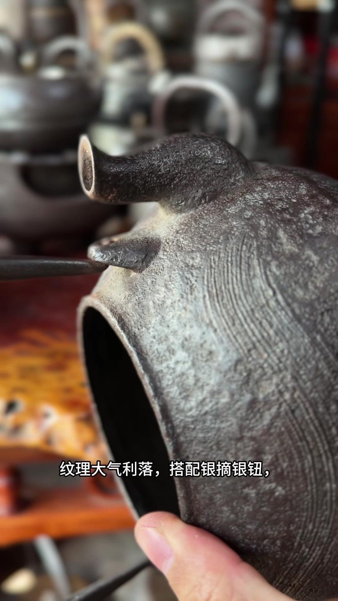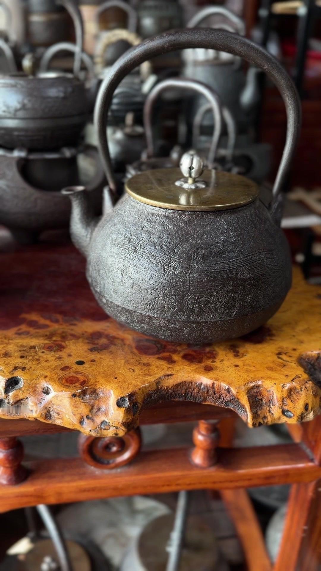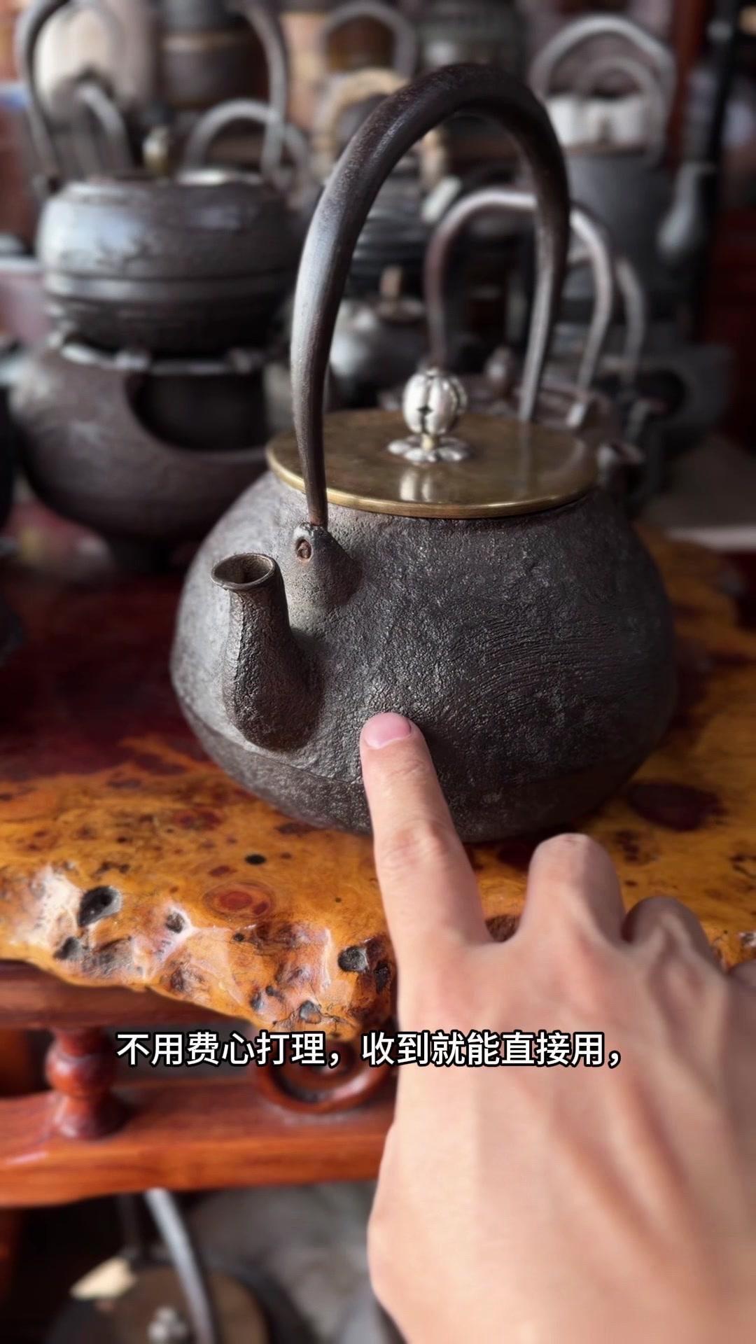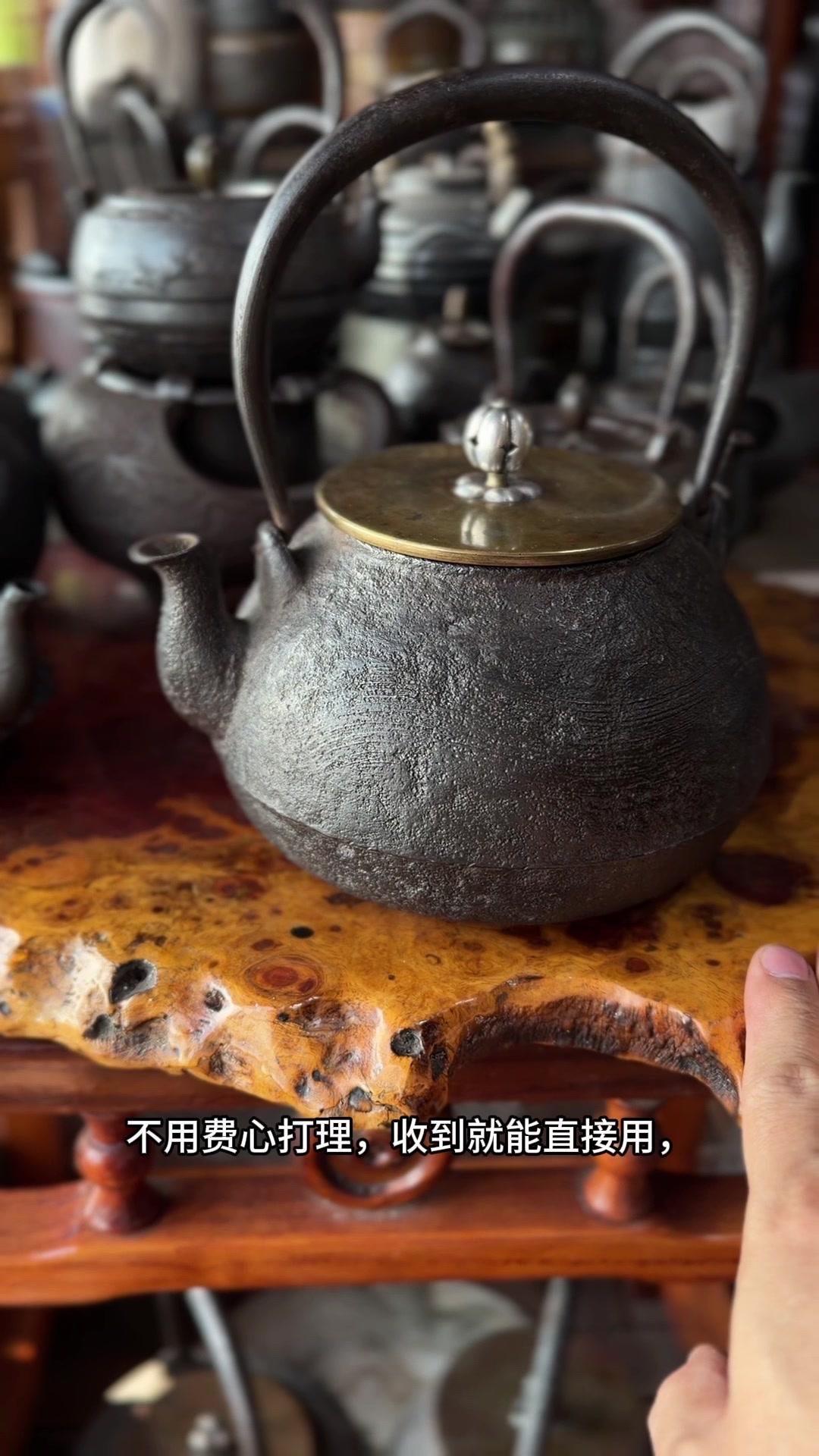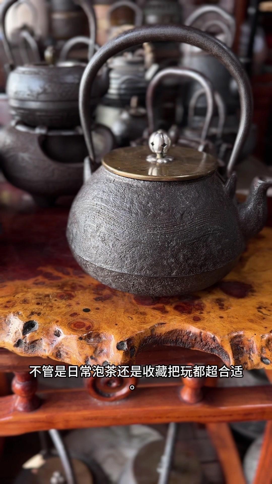 这把壶盖身双款「云色堂造」,落款清晰规整,品相直接拉满。1500cc大容量超实用,总重1582克,盖子302克,上手沉甸甸的,铁质感绝了,摸得到的温润厚实。 壶身是经典刷毛纹,纹理大气利落,搭配银摘银纽,细节处尽显精致质感。最难得的是内里超干净,无锈无垢,原装响片完好,烧水时能发出清脆悦耳的鸣声,茶席氛围感直接拉满。 不用费心打理,收到就能直接用,煮出的水甘甜清冽,不管是日常泡茶还是收藏把玩都超合适。百年匠心传承的老物件,性价比这么高真的少见,懂行的朋友可别错过了。