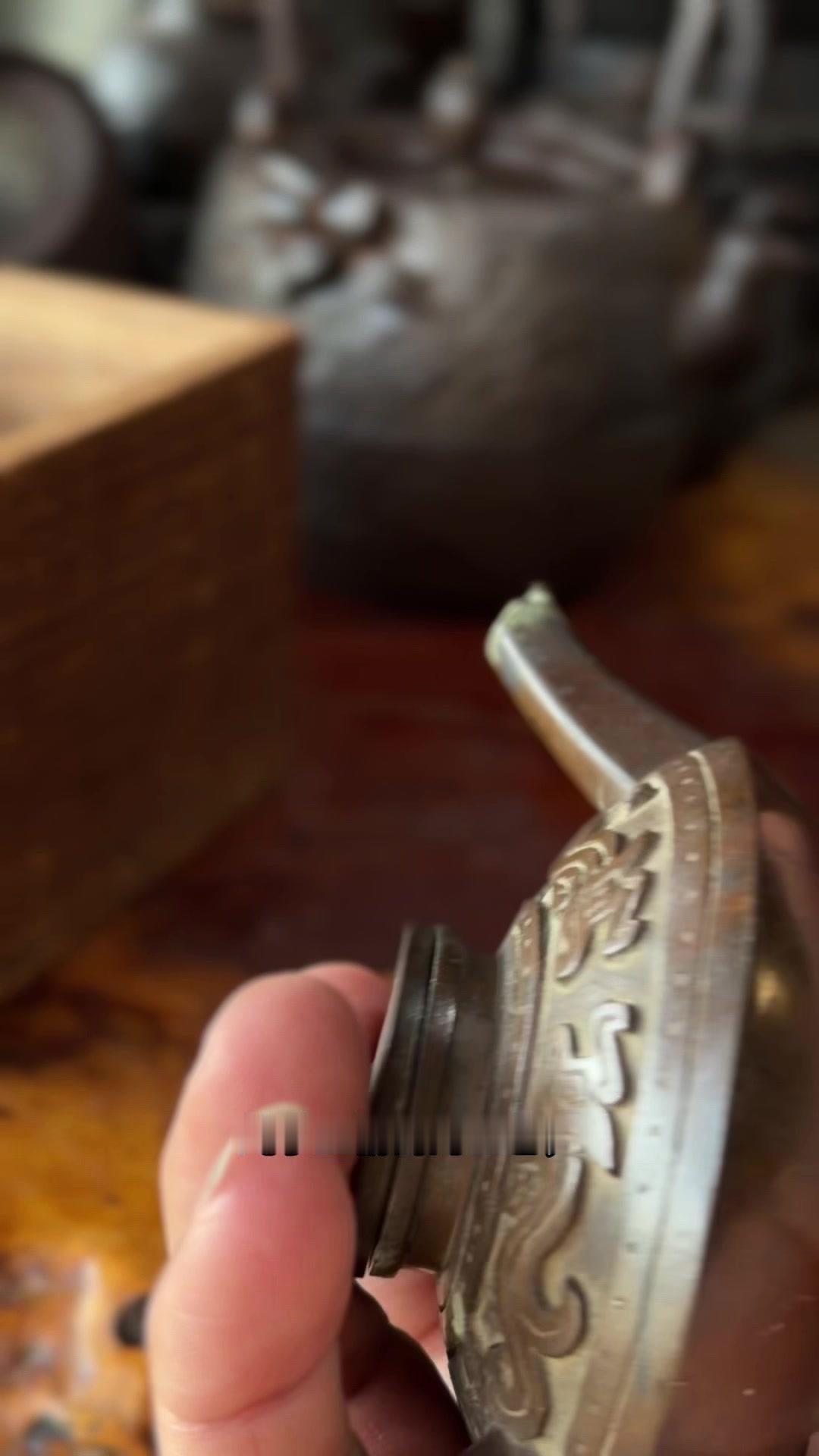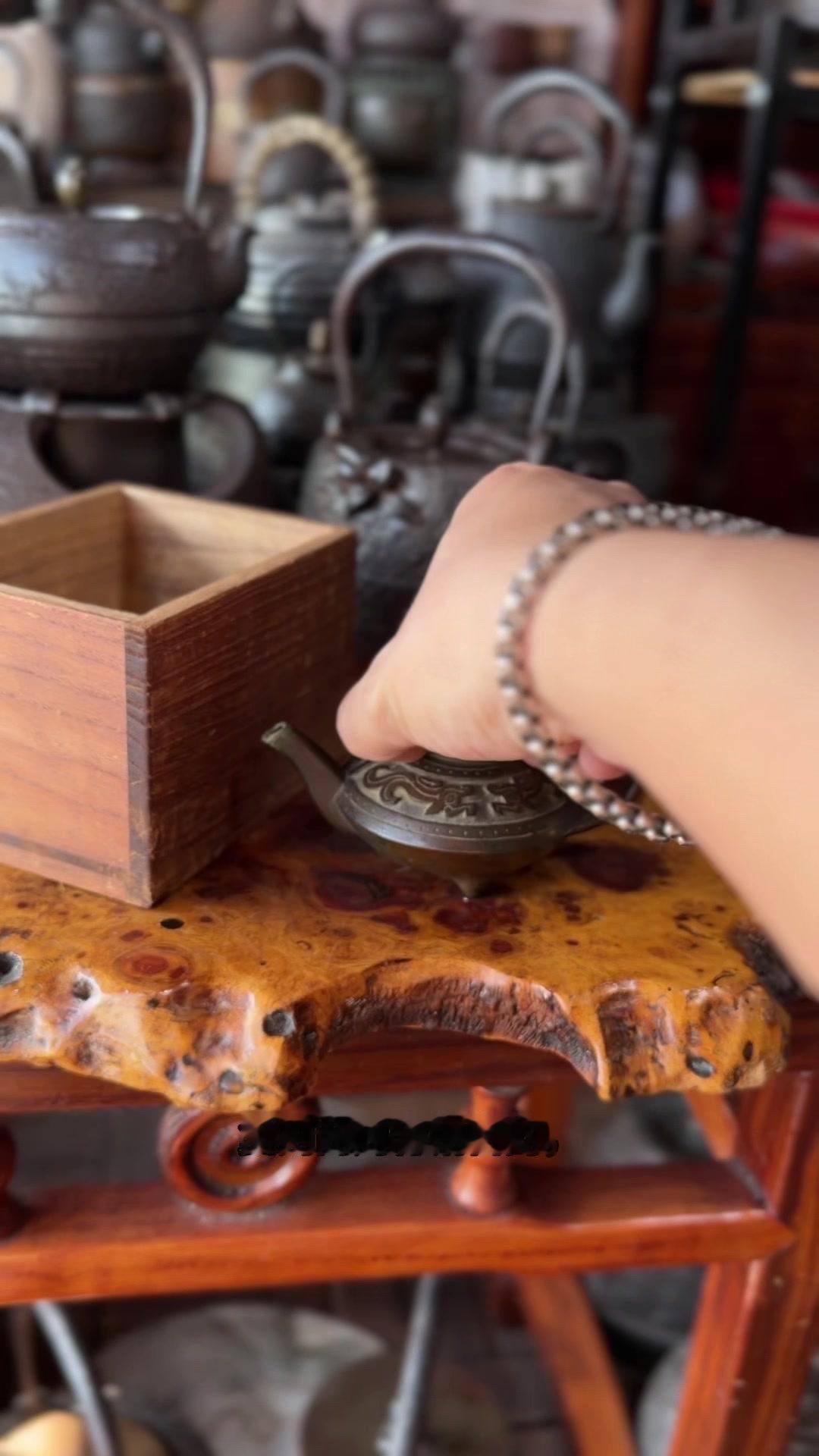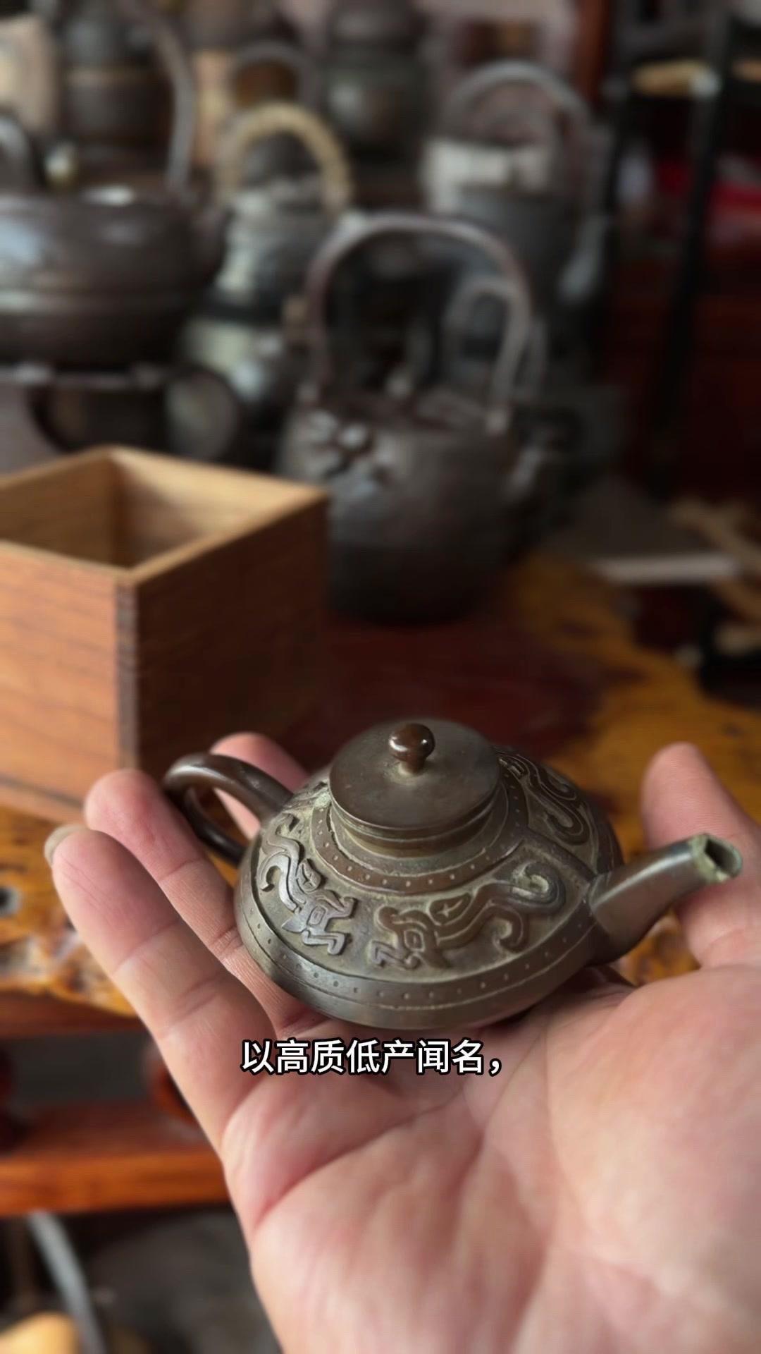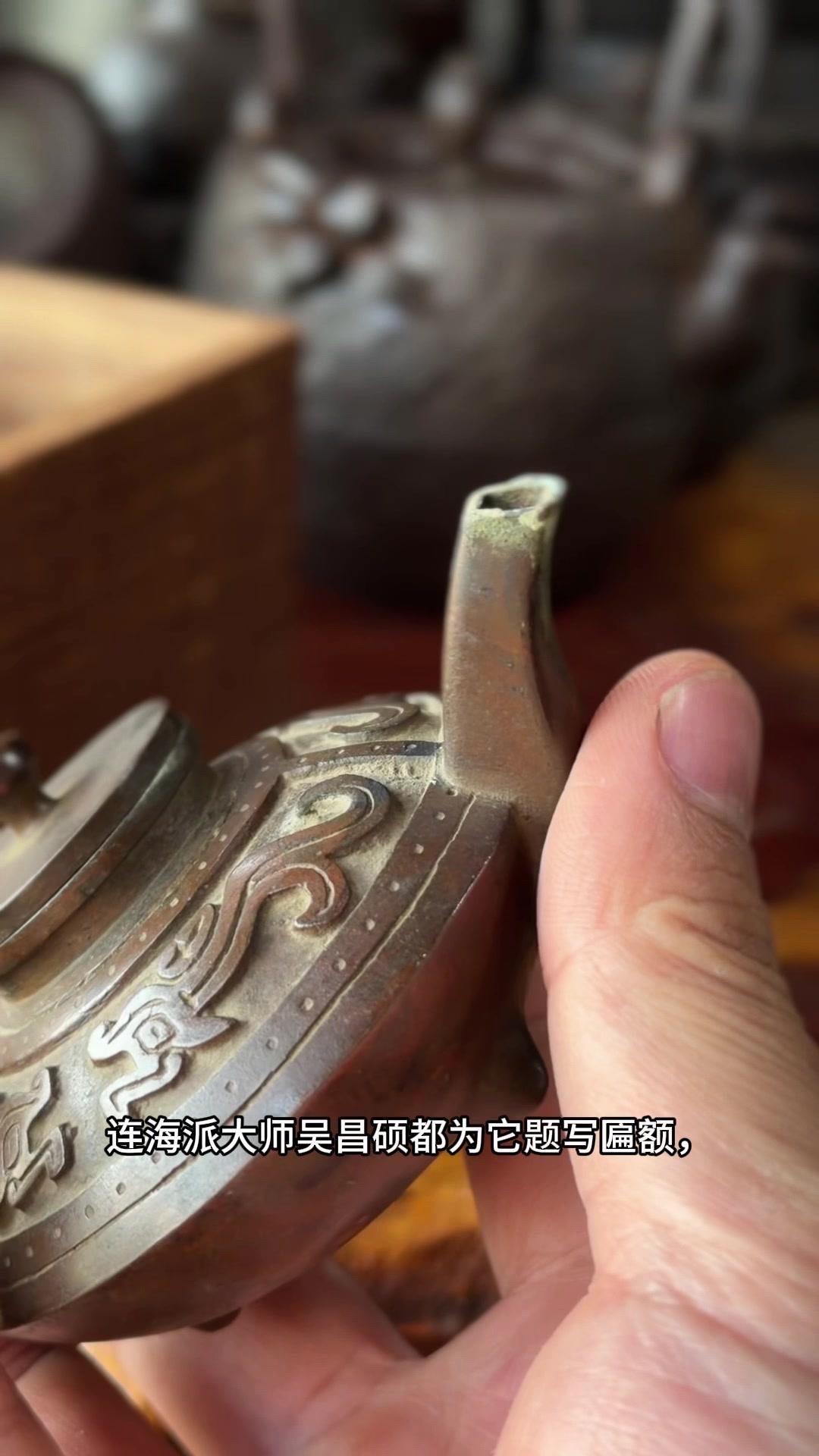 这可是京都高级精工堂口英清堂的传世好物!二代平野英清亲制的昭和初期老物件,还带原盒,妥妥的百年文房宝贝。 87cc满水容量,大小刚好适配书斋挥毫。铜质温润,包浆厚重,是时光沉淀下来的独特质感。器身后手浮雕饕餮纹,线条古拙有力、张力十足,复刻了商周青铜的古韵,把金石气与文房雅趣融合得恰到好处。 英青堂自清代就是日本顶尖铸铁铜器作坊,以高质低产闻名,连海派大师吴昌硕都为它题写匾额,这份跨界认可足见其地位。纯手工精铸的工艺,出水流畅不滴漏,既是实用的研墨利器,更是藏赏皆宜的金工精品,握在手里满是匠人心血与文人雅韵。