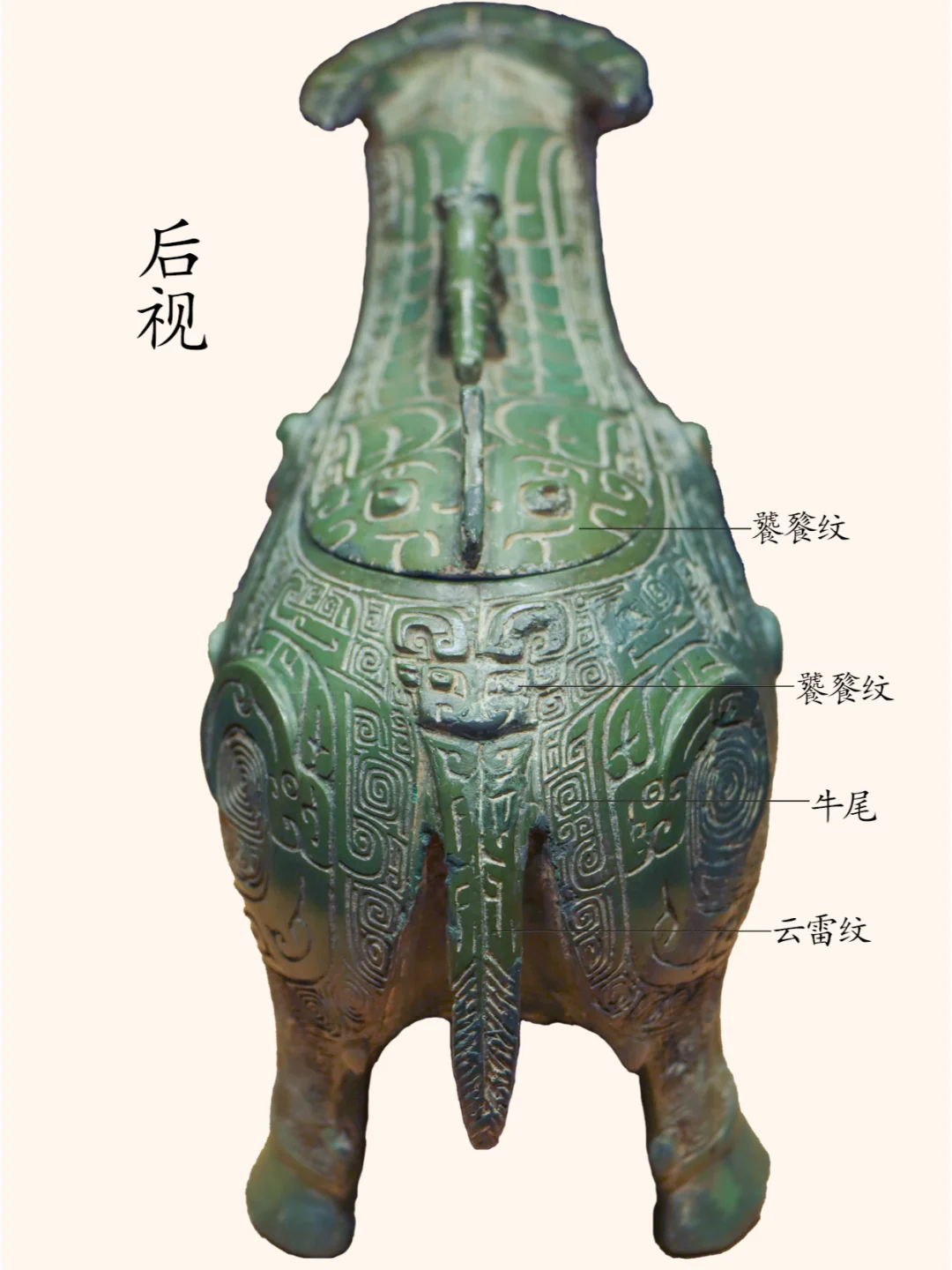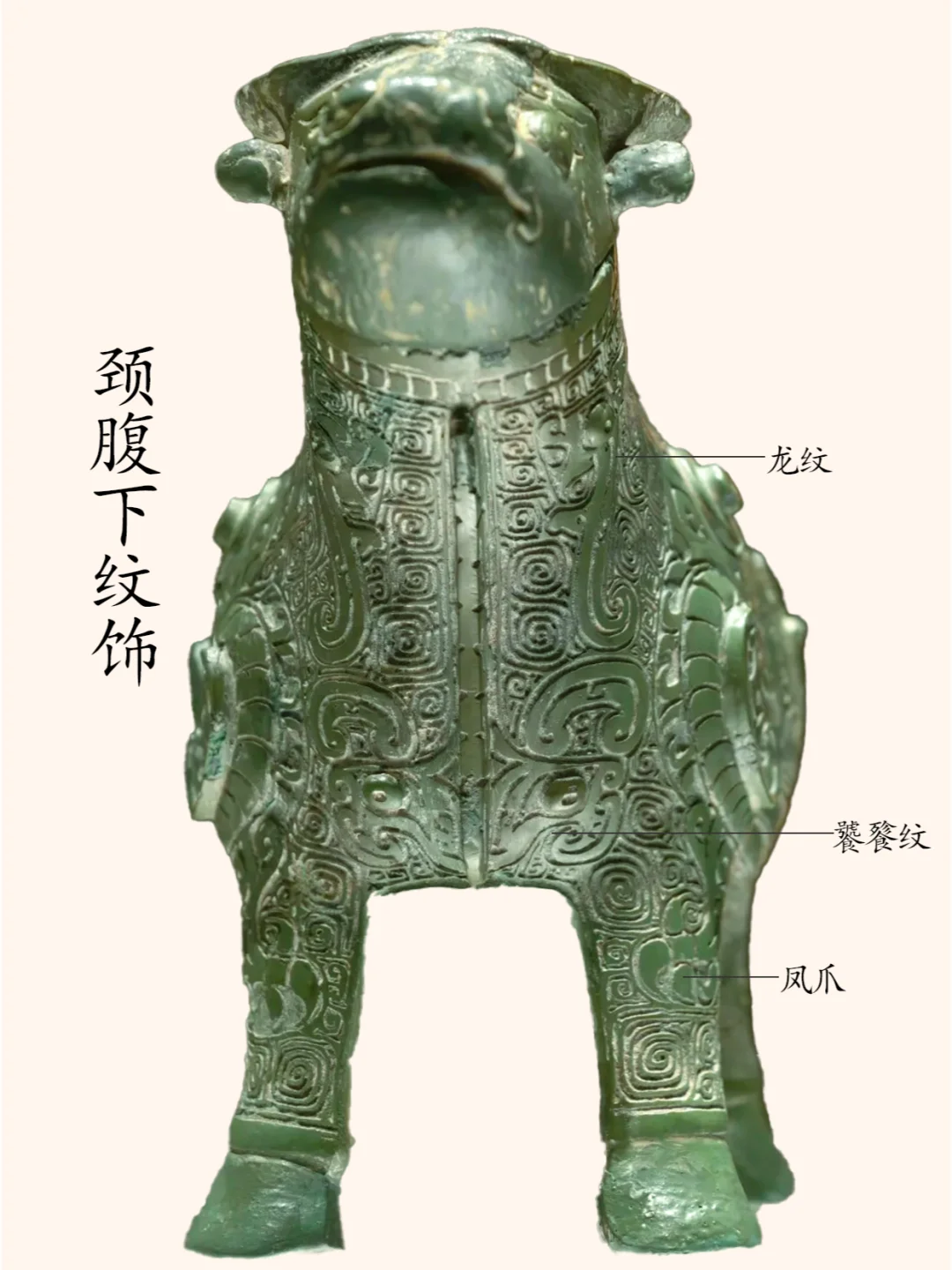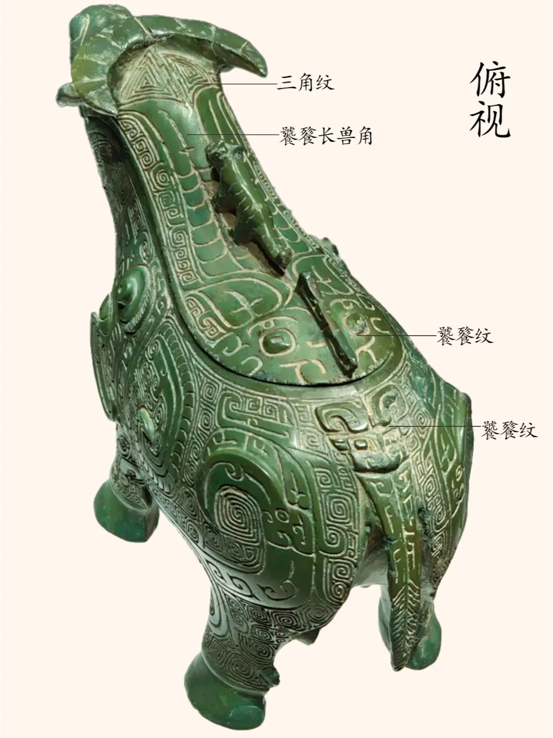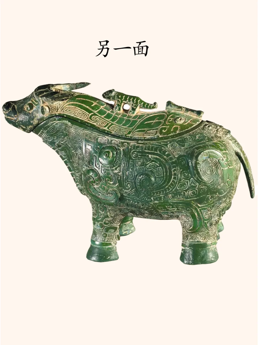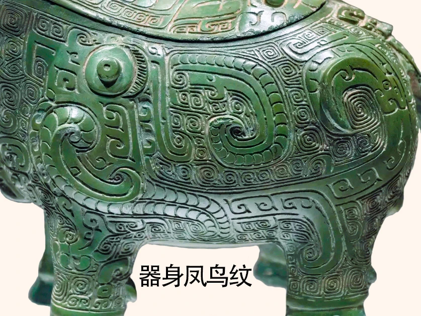 关于衡阳出土牺尊的命名,多年来学术界意见不一。有的称之为牺尊、牛形尊也有的称牛形觥。这两种命名各有一定的道理。认为它是觥的学者,可能强调的是此器有短流,以牛首和牛背为盖,盖较长。而称之为尊的学者,则认为觥的特征除前端有流外,后端还应有半环状鋬,但此器无鋬。 笔者观点:称它为尊较为合适。具体原因就不赘述了。 器物名称:凤鸟纹牛形尊(博物馆展牌名称:牛形铜觥 )。 时代:商代晚期。 收藏单位:衡阳市博物馆藏品。 器物规格:通高14厘米、通长19.8厘米。重776克。 出土地点: 1977年湖南衡阳市西郊包家台子出土。 器物介绍: 器形:由器身和器盖两部分组成,盖前端为牛首,后端为牛背。整体形似水牛。器盖的前半部牛首,二目圆睁,小耳,双角扁平后曲。器盖的后半部上立一虎为盖钮,虎长尾,四肢伫立。牛的躯体浑圆,四肢粗壮。 纹饰:牛头部有扁平弯曲的圆雕双角,”臣“字形眼,圆形眼球突出,内有小圆形凹窝,眼上为阴线刻一字长眉,圆雕叶形双耳外展,牛腹下有四个粗短的蹄足,足后有凸起的小趾,牛臀部正中有下垂的短尾。牛颈下两侧以中间扉脊为界左右两侧各饰饰一组卷尾立龙纹,其首两两相对,其下饰一组饕餮纹纹,以中间扉脊为鼻。牛腹部两侧各饰一只大凤鸟纹,凤鸟的躯体呈横长形,勾喙,圆眼,凸起的圆瞳,其内有小圆形凹窝,眼右侧有弯月形长眉,内饰阴刻直线示眉毛,头上有向后向内弯卷的长冠及向下延展内卷的羽冠,凤爪延伸直牛前足,凤羽分两叉一段延伸至牛腹下,一段延伸至牛后腿,凤尾延伸至牛臀部之后向上弯卷。牛臀部与牛尾结合处饰饕餮纹。盖尾是饕餮纹,盖身饰饕餮纹延伸的长角纹,盖身与盖首牛角处饰两组阴线看三角纹。整器以云雷纹衬地。 凤鸟纹牛形尊通体碧绿,造型敦实凝重,纹饰繁缛,制作精细。 作者:九芒考古。 参考资料: 陈佩芬编著:《中国青铜器辞典(修订版)》上海辞书出版社,2024年。 朱凤瀚:《中国青铜器综论》(上中下三册)上海古籍出版社,2009年。 马承源:《中国青铜器》,上海古籍出版社,1988年。 青铜器 文物 博物馆 考古 历史 文化 古代